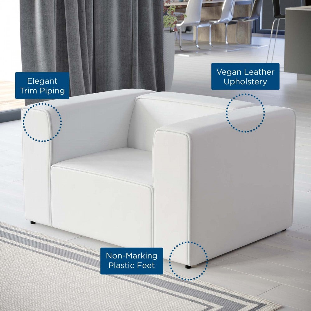 Kick back and relax with the Mingle Vegan Leather Armchair. Designed to wash away the hindrances that obstruct visual space, Mingle comes expansively designed with generous seating and dense foam padding that allows for just the right amount of giving. Mingle easily positions according to the needs of the moment and features rich vegan leather upholstery with elegant piping and plastic legs for steady support. Host animated living or lounge room get-togethers with a modular sectional seating assortment perfect for contemporary modern décors.