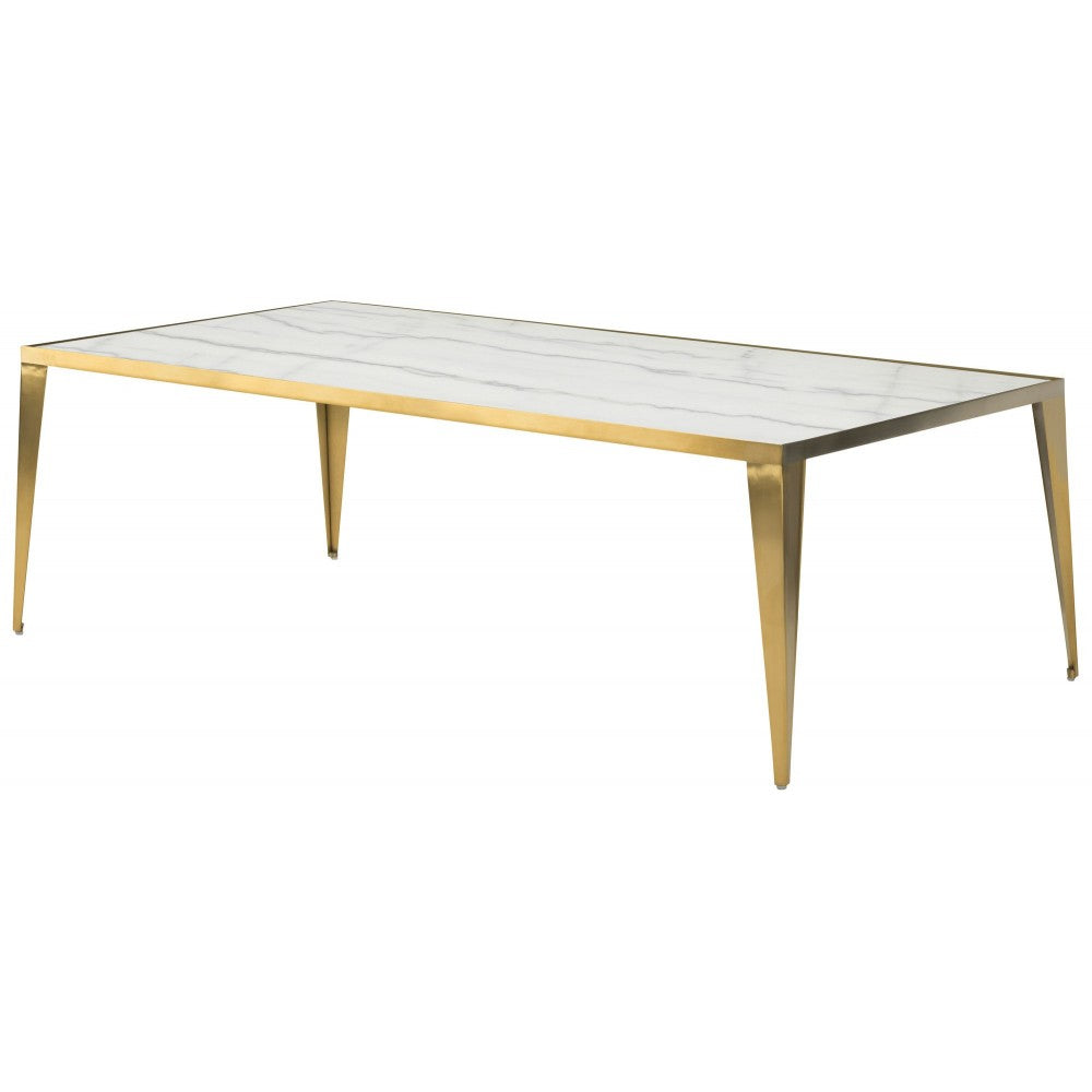 The Mink coffee table marries a sleek form in steel and inlaid marble with classical contemporary minimalism, the result a timelessly sophisticated aesthetic. Each piece of marble is expertly crafted out of a unique piece of natural stone, creating beautiful variations and one-of-a-kind details.