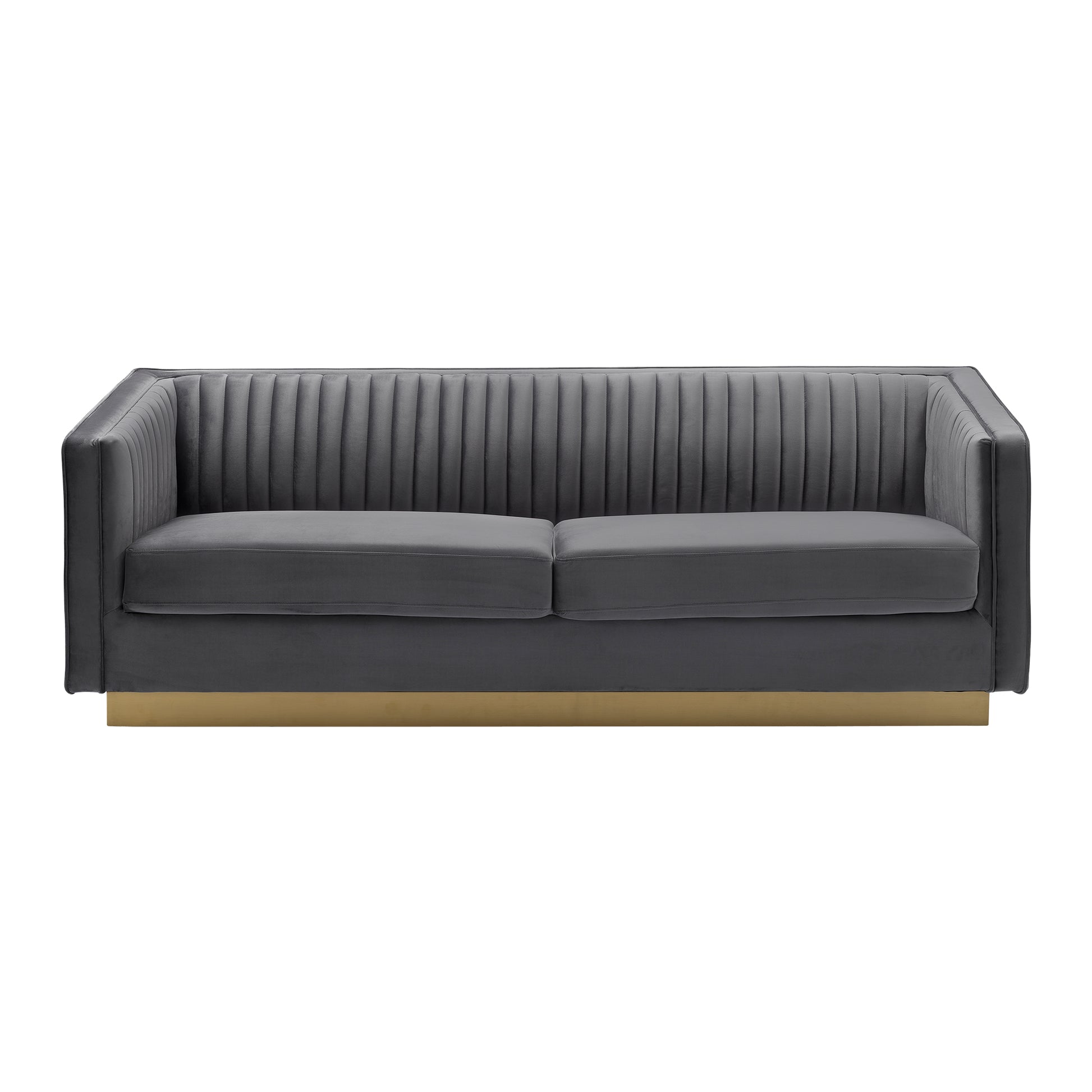 Make a chic statement in your living room with The Armen Living Miranda Velvet Sofa. Featuring a sleek silhouette, the Miranda is upholstered in a rich velvet fabric that feels exceptionally soft to the touch. Channel tufting highlights the stunning sheen in the velvet, while the striking antique gold finished metal base anchors the glamorous look of this sofa.