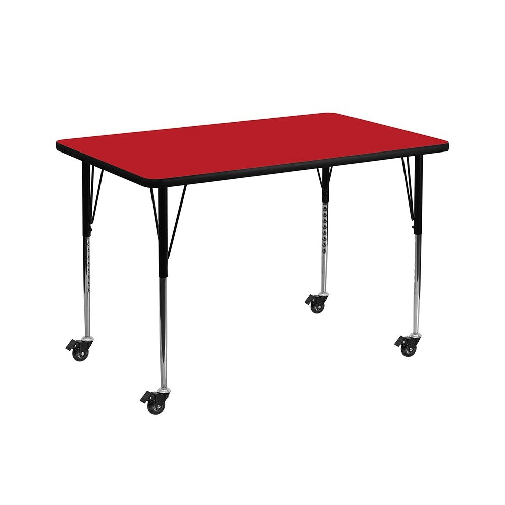 Mobile 36''W x 72''L Rectangular Red HP Laminate Activity Table - Standard Height Adjustable Legs