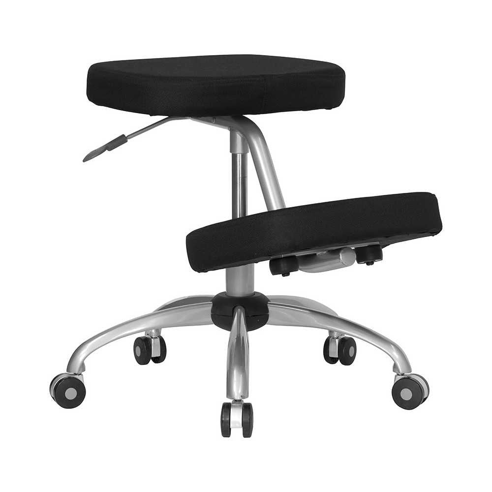 Mobile Ergonomic Kneeling Office Chair with Silver Frame in Black Fabric