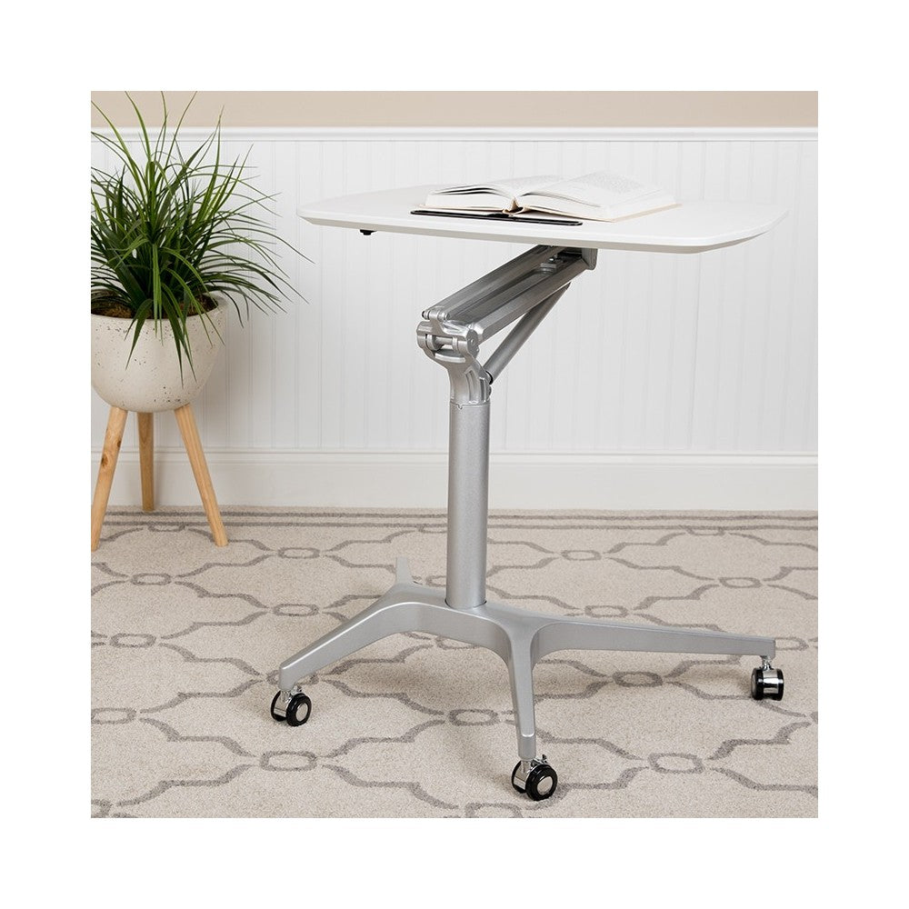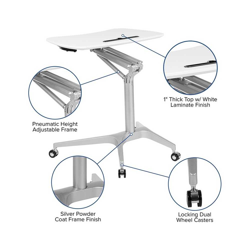Mobile Sit-Down, Stand-Up White Computer Ergonomic Desk with 28.25"W Top (Adjustable Range 29" - 41")
