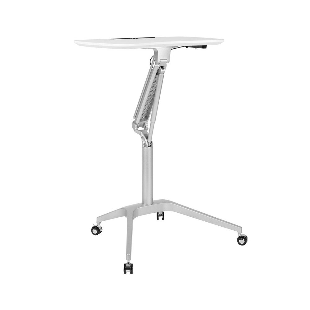 Are you choosing to live a healthier lifestyle? Start where you spend the most time, your office desk. This ergonomic standing desk gives you the option to sit down or stand up and move about the office with its rolling casters. We all know that sitting for hours is an unhealthy practice, but with long workdays it has become more common. Standing helps strengthen leg muscles, improves your balance and promotes healthy blood flow. Standing even burns more calories than sitting. The pneumatic lever allows you to easily adjust the height with minimal effort. When preparing to work you should adjust the computer desk so the surface is at the most comfortable position for typing. Move freely with four casters, once you're ready to work lock the two front casters. Achieve a healthier way of working with this contemporary, versatile sit and stand computer desk. [NAN-IP-10-WH-GG]