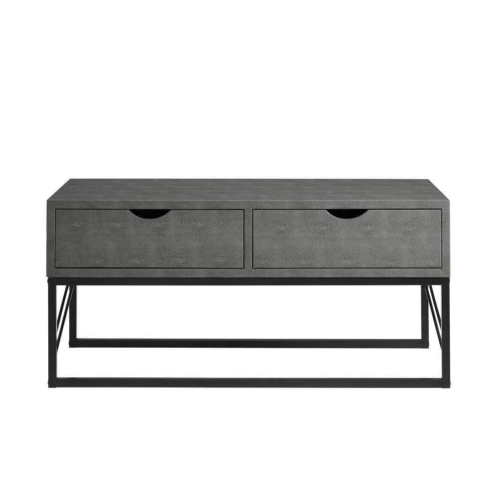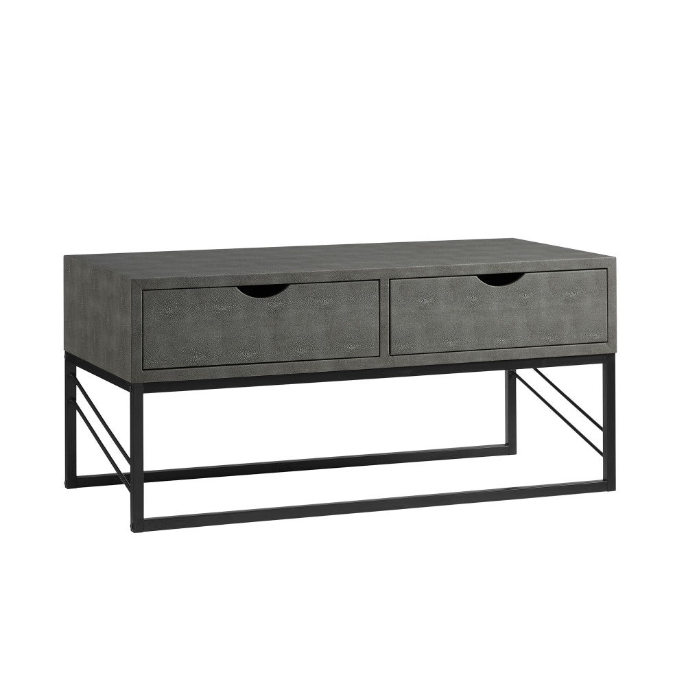 Modern 2-Drawer Faux Shagreen Coffee Table - Gray
