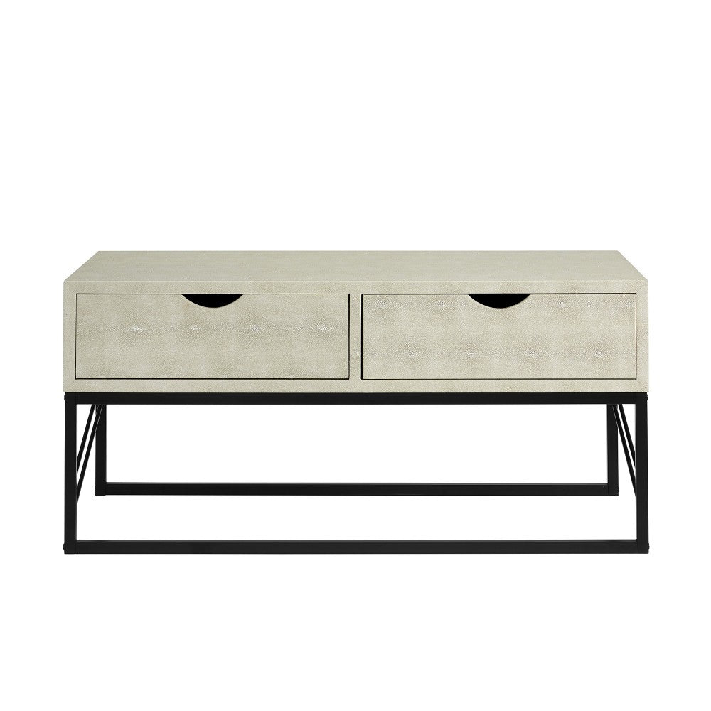 Modern 2-Drawer Faux Shagreen Coffee Table - Off White