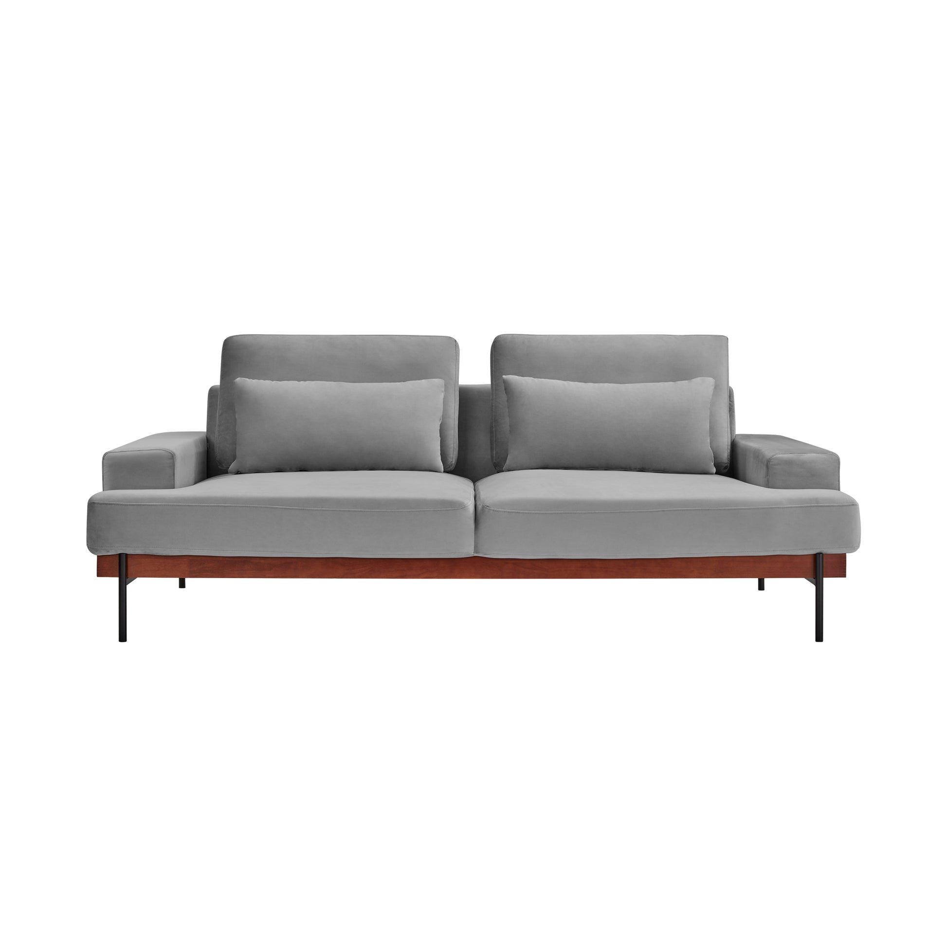 The Monet Mid-Century Modern Velvet Sofa from Armen Living is a simple equation: style plus sophistication equals this wonder piece of furniture. The Monet Sofa is wrapped in a soft velvet upholstery, featuring low arm rests and a wide seat which each contribute to the sophistion in their own way. The thick foam-padded cushion is absolutely relaxing and will keep you at ease all day long. This sofa ships with two additional toss pillows to accessorize with.
