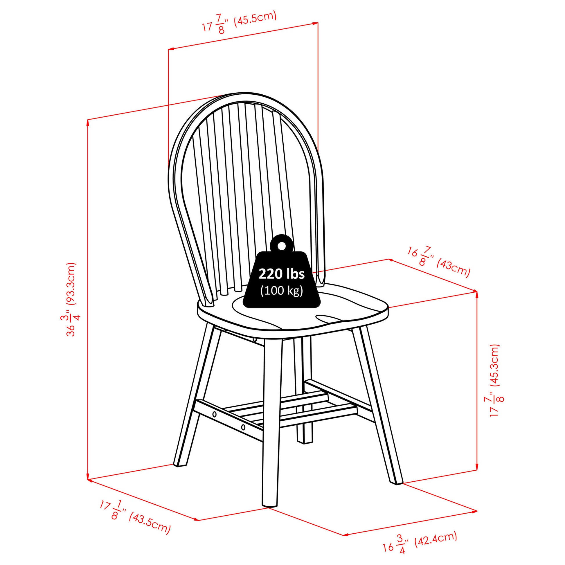 The Mornay Table draws on early American craftsmanship in its styling, as do the two matching Windsor Chairs. Handsomely turned legs, full aprons, rounded corners, and a rich walnut finish all combine in this lovely dining table that is well-sized for apartment or small-space living. The chairs have slightly angled legs and spindled backs that echo the table's Colonial touch. Both table and chairs are made of solid wood for long-lasting beauty and durability.