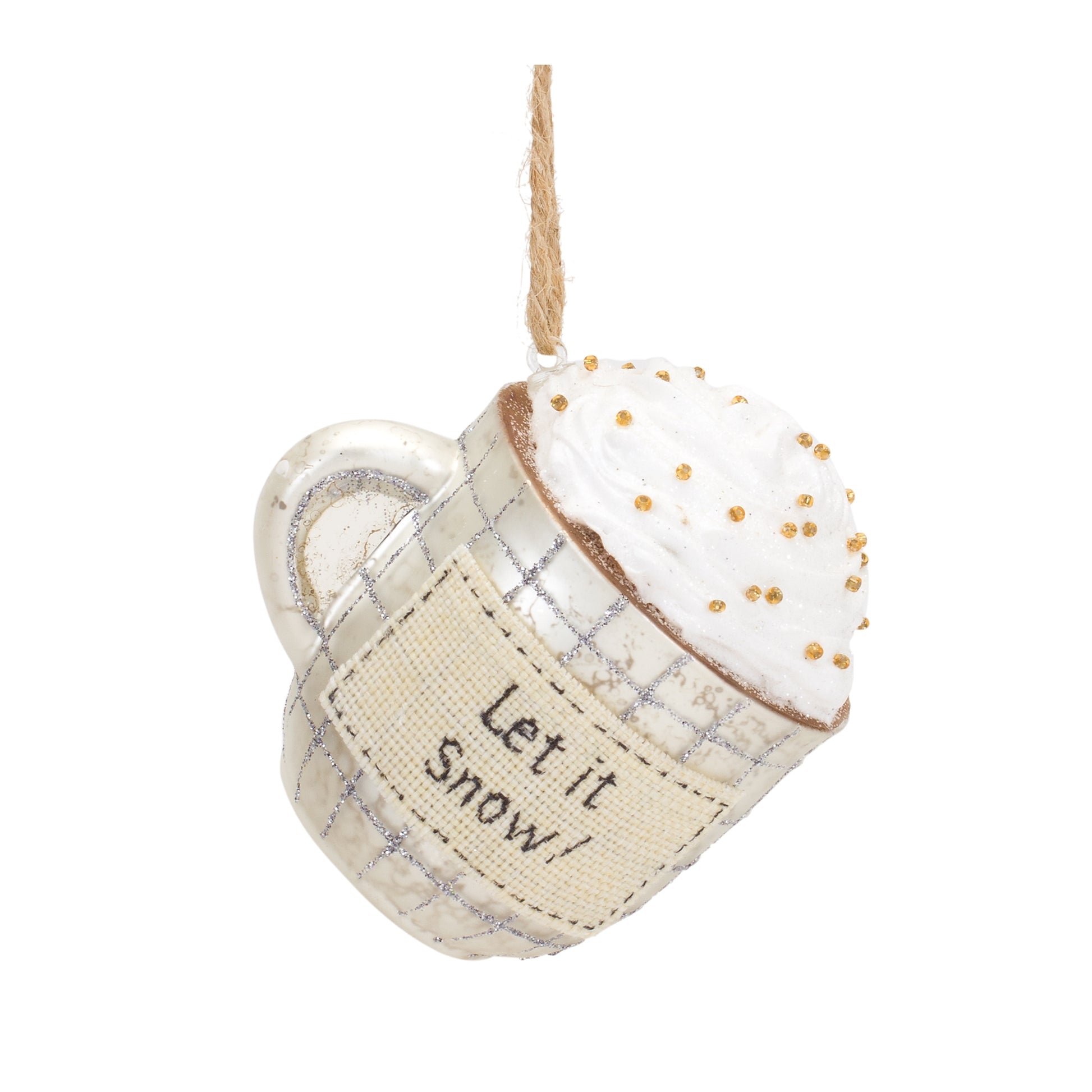 Adorn your Christmas Tree with this beautiful set of Mug Sentiment Ornaments. Featuring two assorted designs, this set includes the sentiments "Let it Snow!" and "Warm Wishes". The whimsical coffee mug design paired with the sparklely finish and twine hanging accent makes this set the perfect addition to your holiday tree decor. The pieces can be used as gifts for friends to cherish, or you can display the set on your own Christmas tree and enjoy them for years to come.