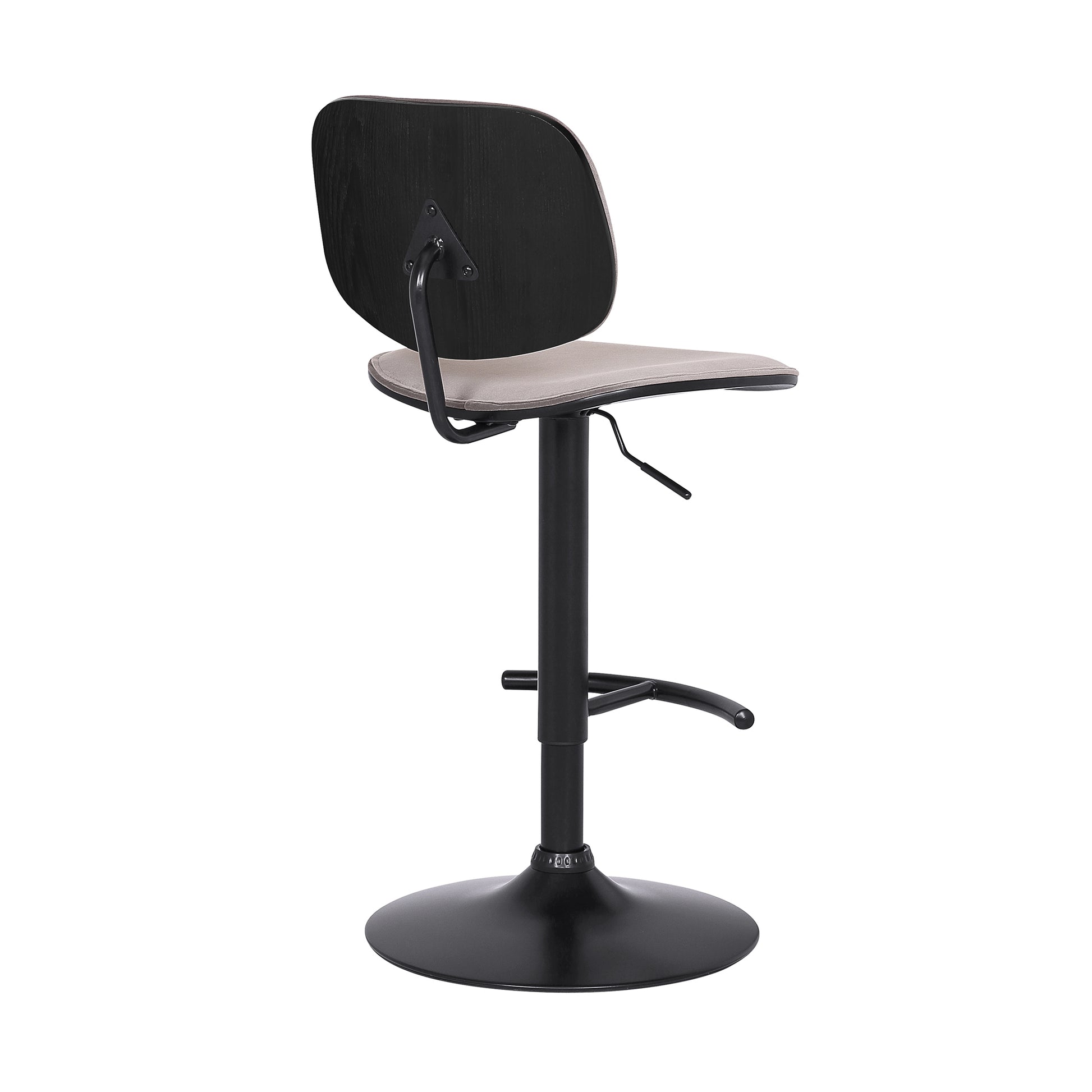 Lend your modern kitchen or entertainment area a gorgeous twist with this height-adjustable bar stool. This high-back, swivel stool features a round base that sits sturdily on your floor. A convenient footrest, your choice of velvet or faux leather upholstery, and black powder coated hardware complete this stool's visual appeal.