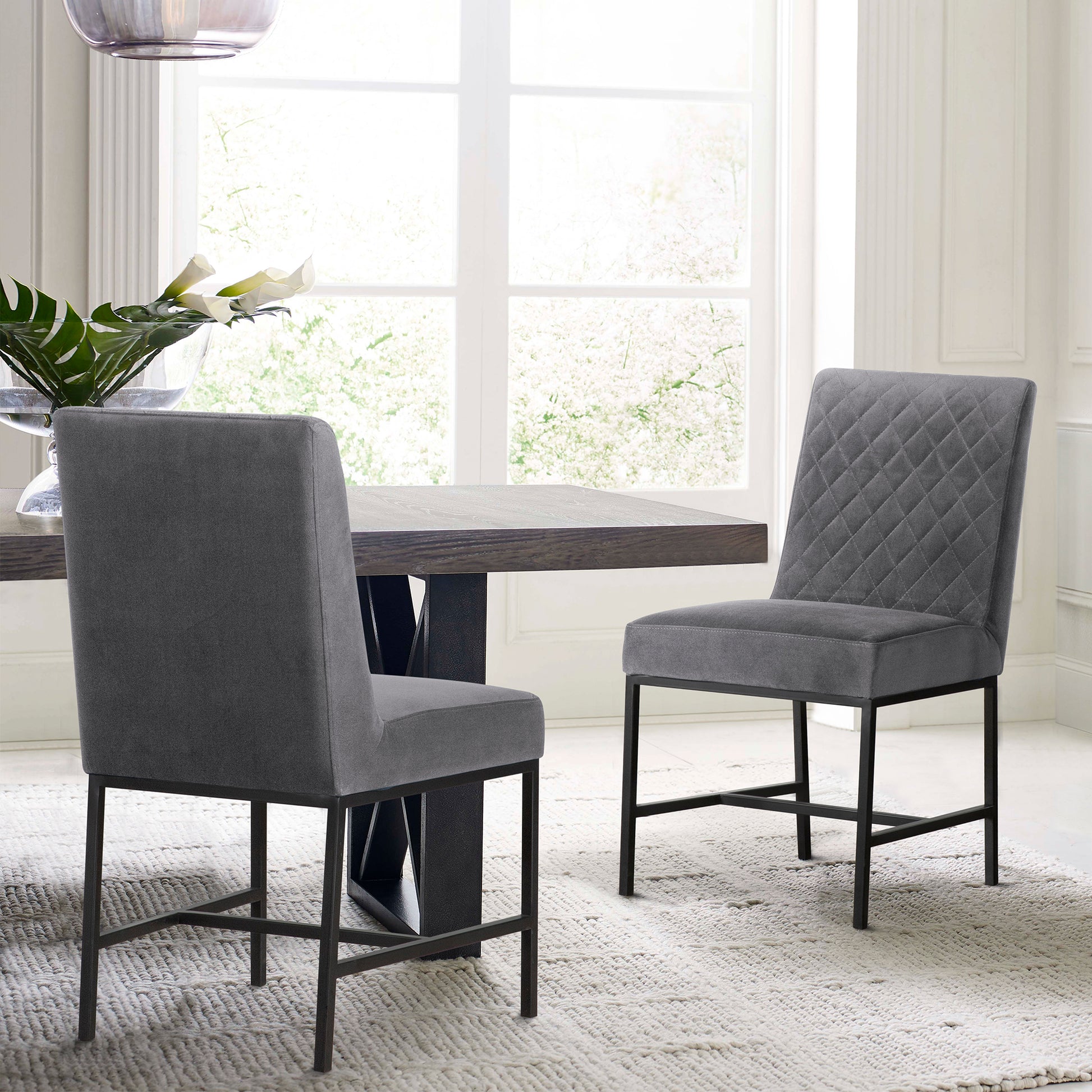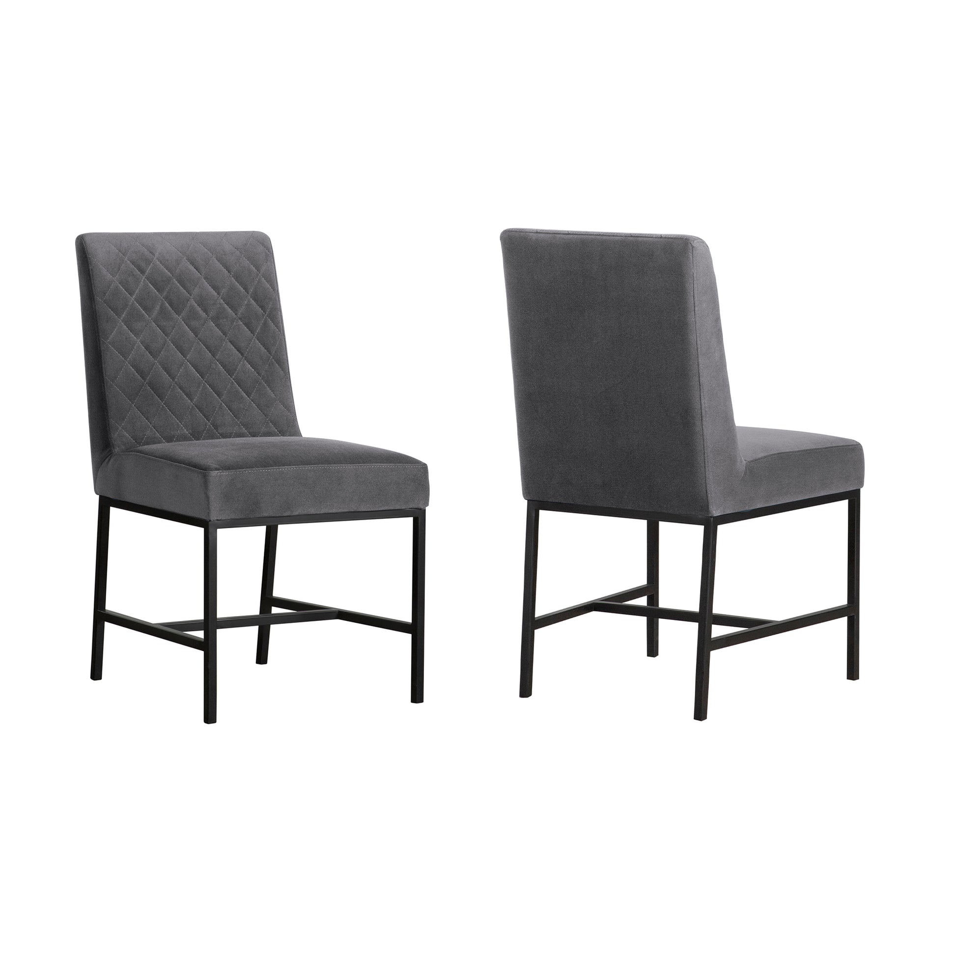 Napoli Gray Velvet and Black Leg Modern Dining Accent Chair-Set of 2