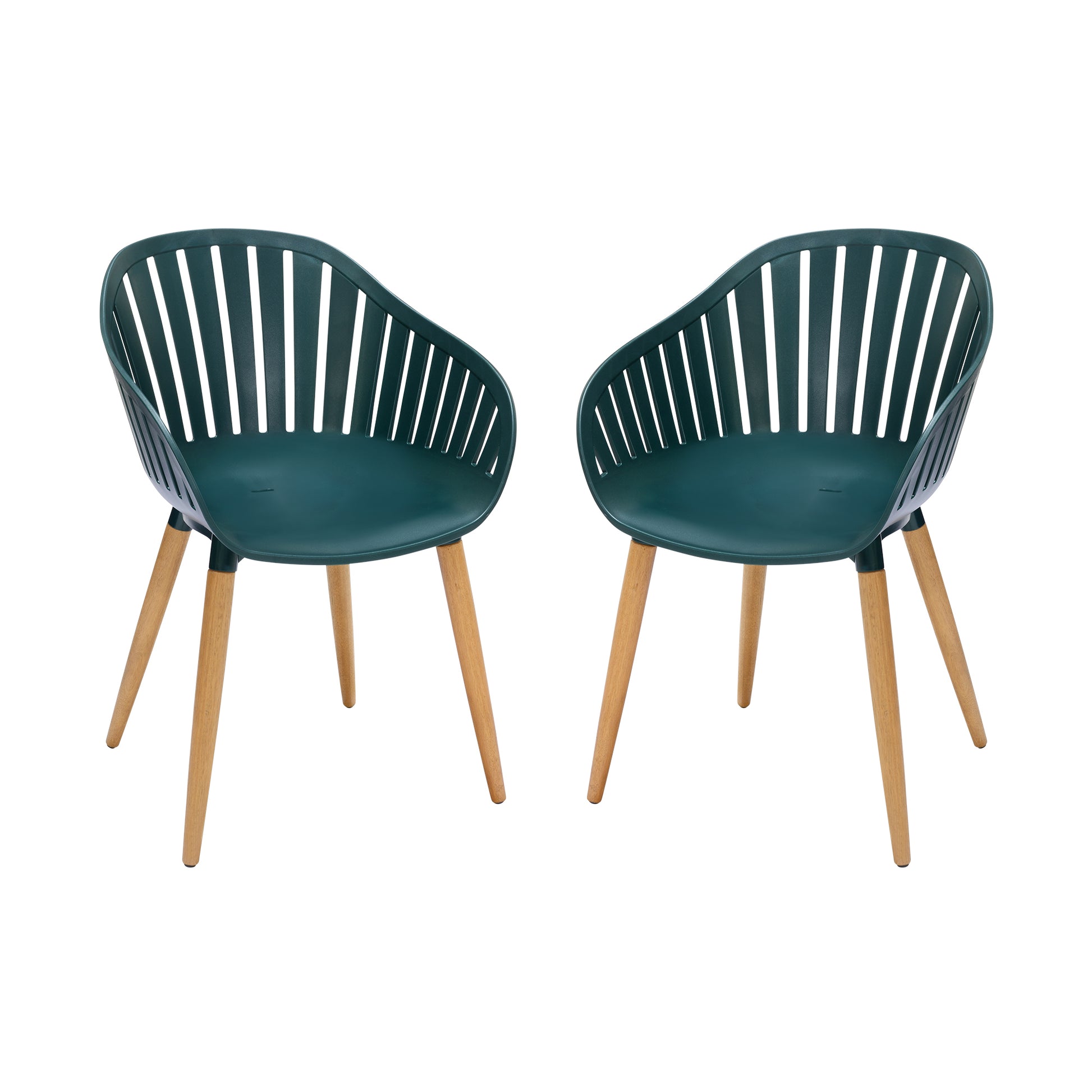 Nassau Outdoor Green Dining Chair with Eucalyptus Wood Legs - Set of 2