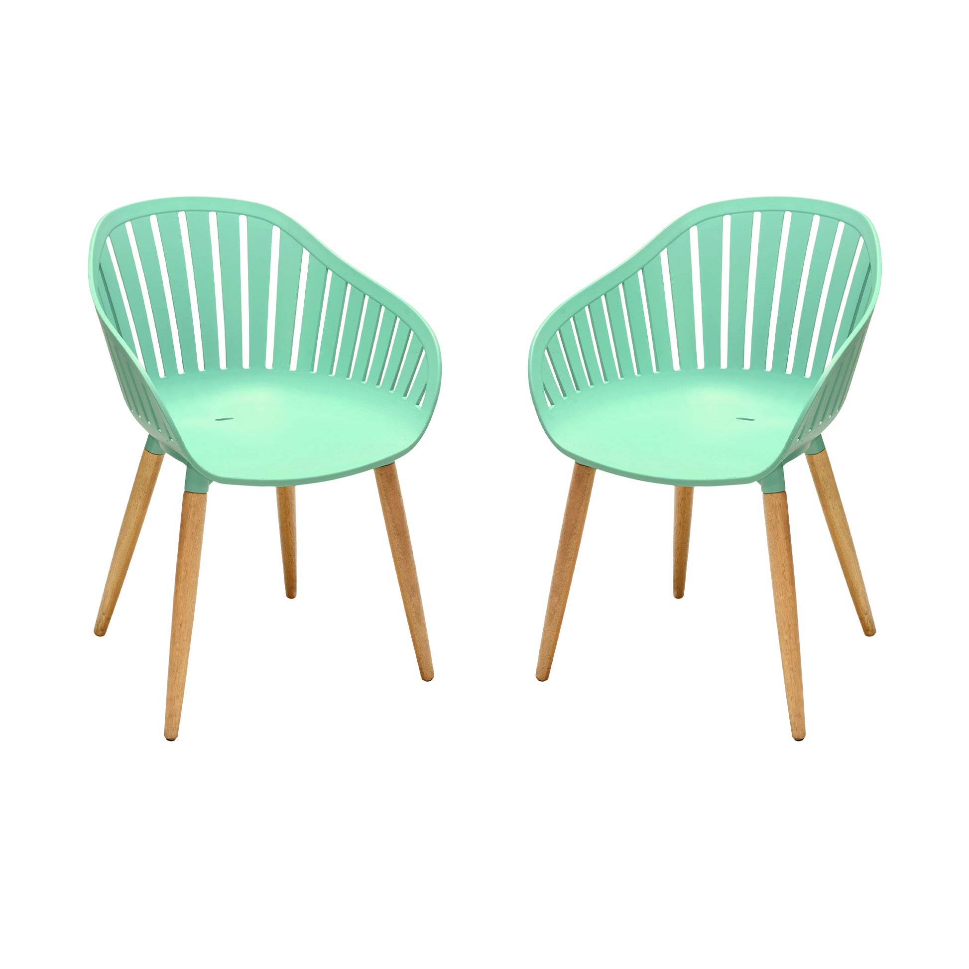 Nassau Outdoor Mint Green Dining Chair with Eucalyptus Wood Legs - Set of 2