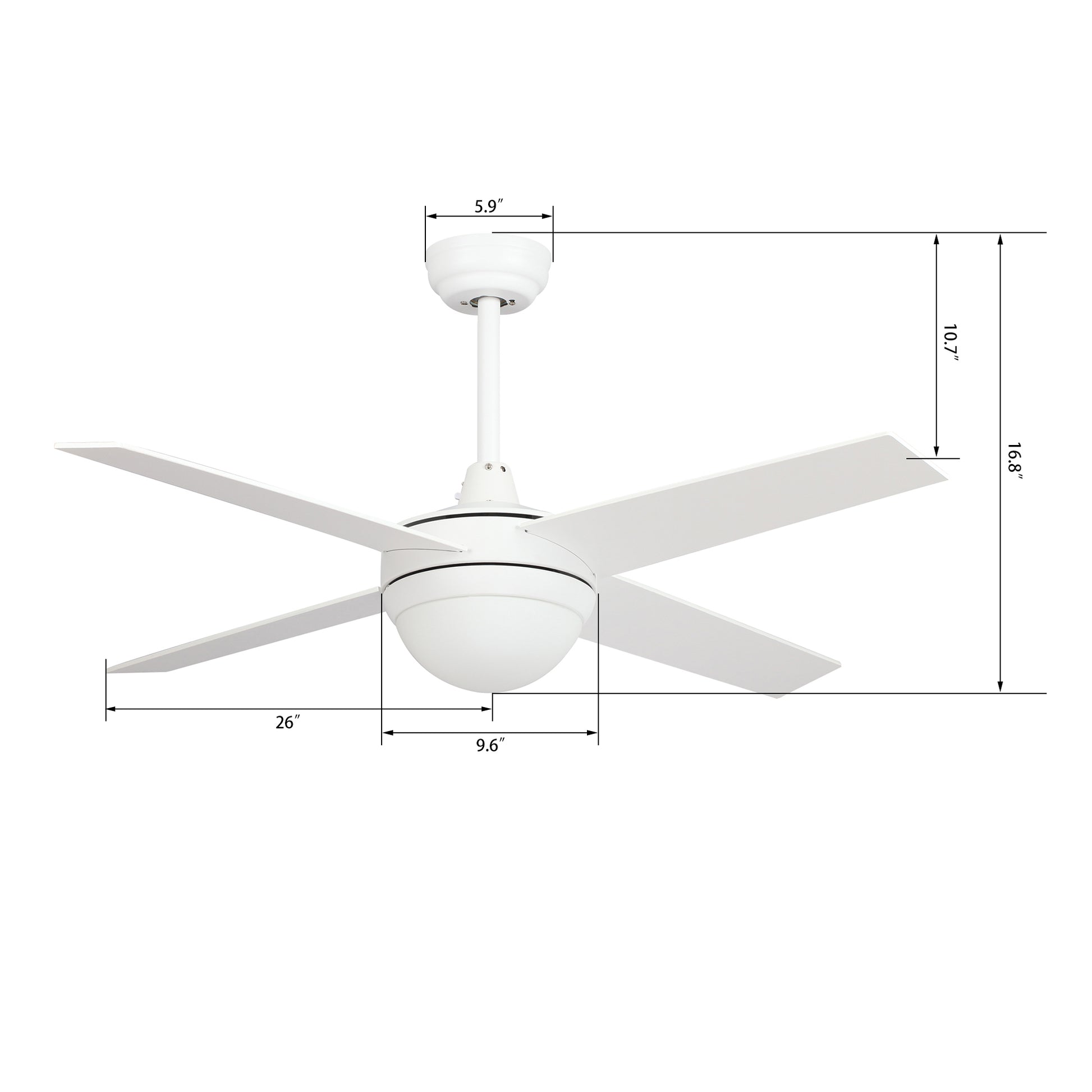 Neva 52 Inch 4-Blade Smart Ceiling Fan - White