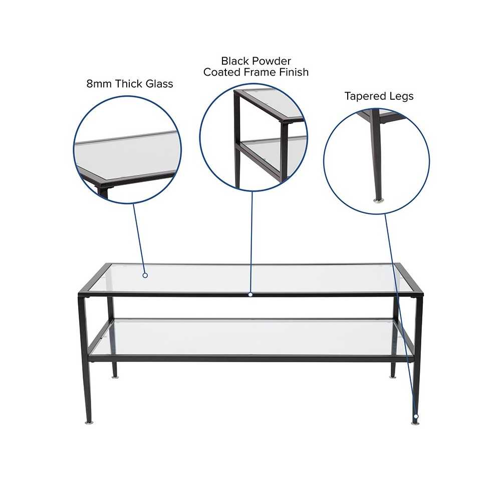Newport Collection Glass Coffee Table with Black Metal Frame