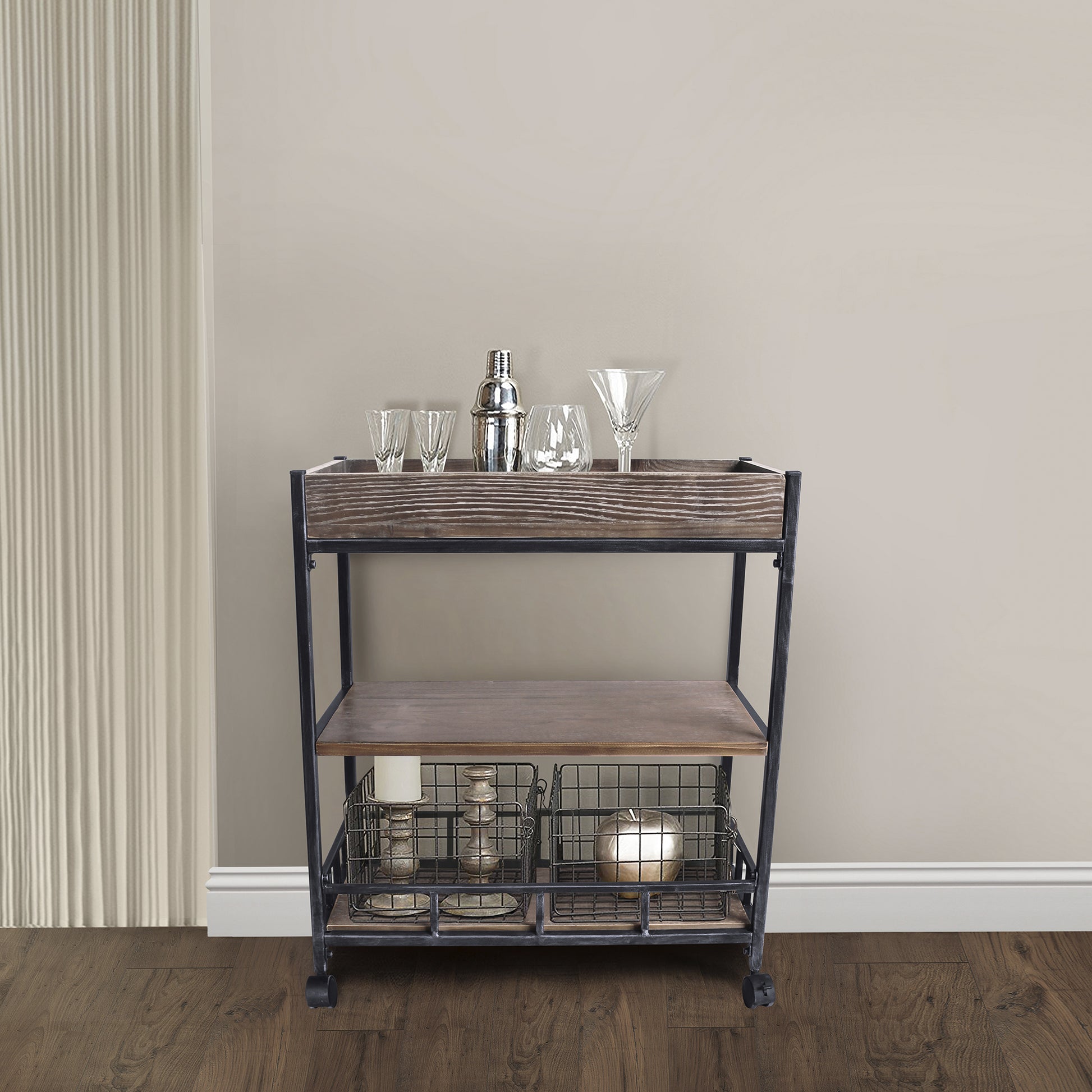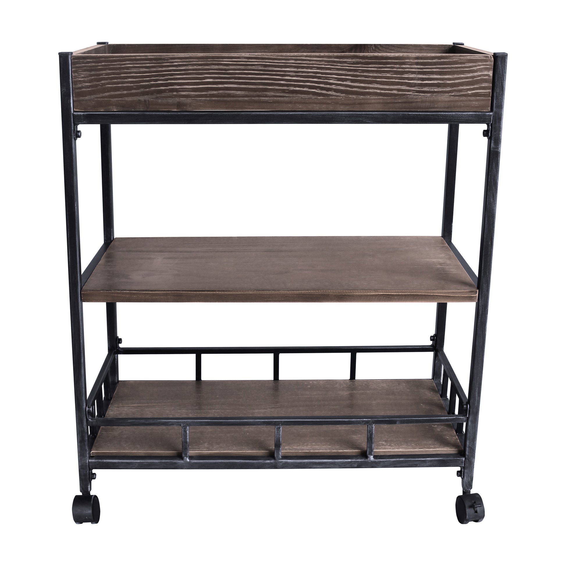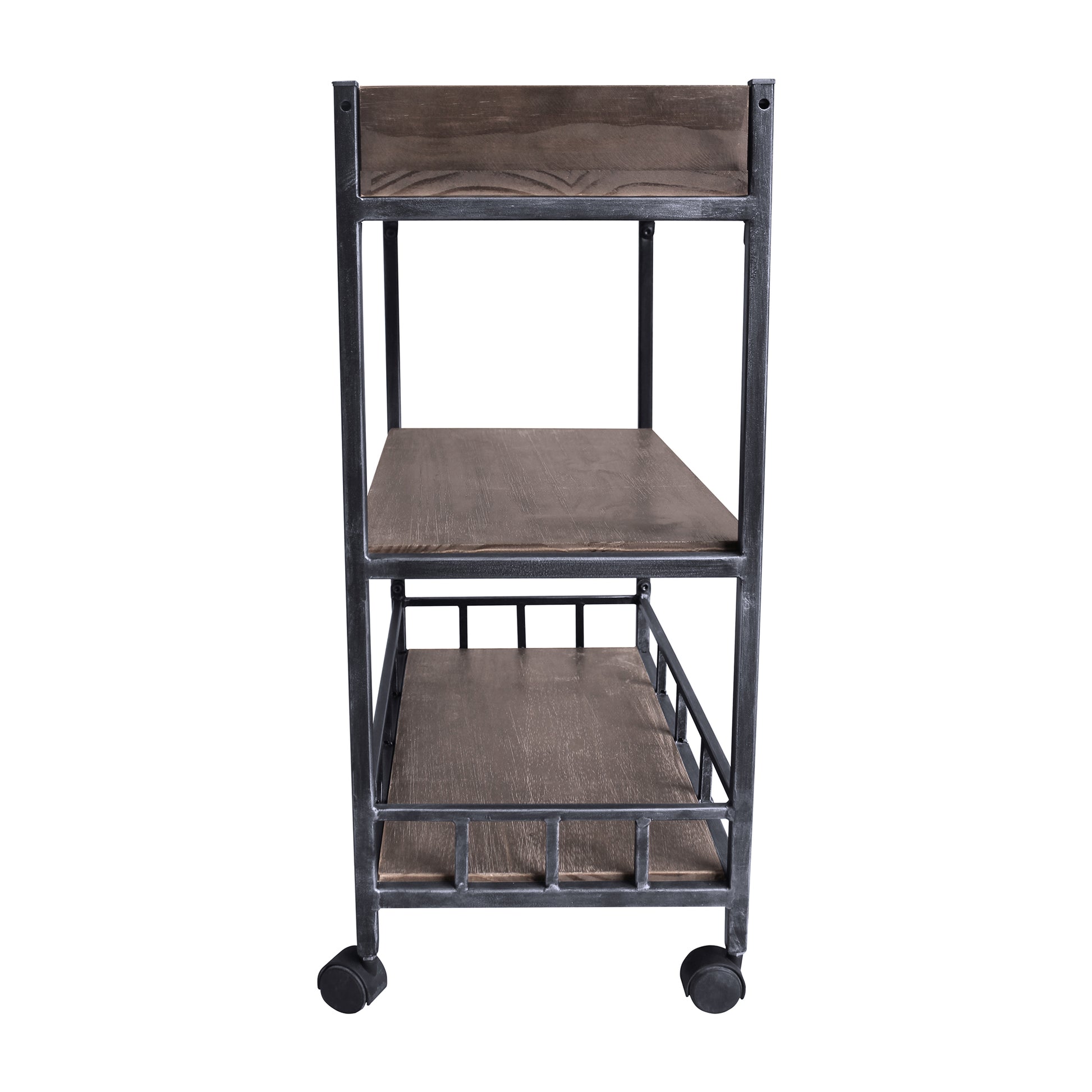 - Niles Industrial Cart In Industrial Gray Finish And Pine Wood Shelves