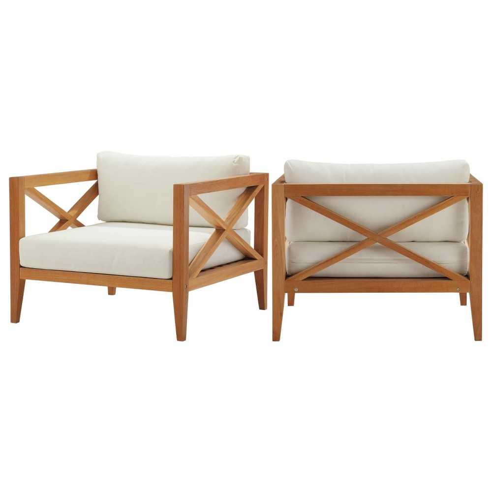 Create your best memories as you lounge in the Northlake Armchair Set of 2. Ideal for balconies, backyards, patios, gazebos, poolside or garden, Northlake features all-weather UV resistant cushions and a unique cross-back design for added support and aesthetic appeal. Teak is known for solid construction and the ability to withstand weather extremes and is the wood selection of choice for long-lasting outdoor decor. Includes an all-weather UV resistant Sunproof fabric cushions.