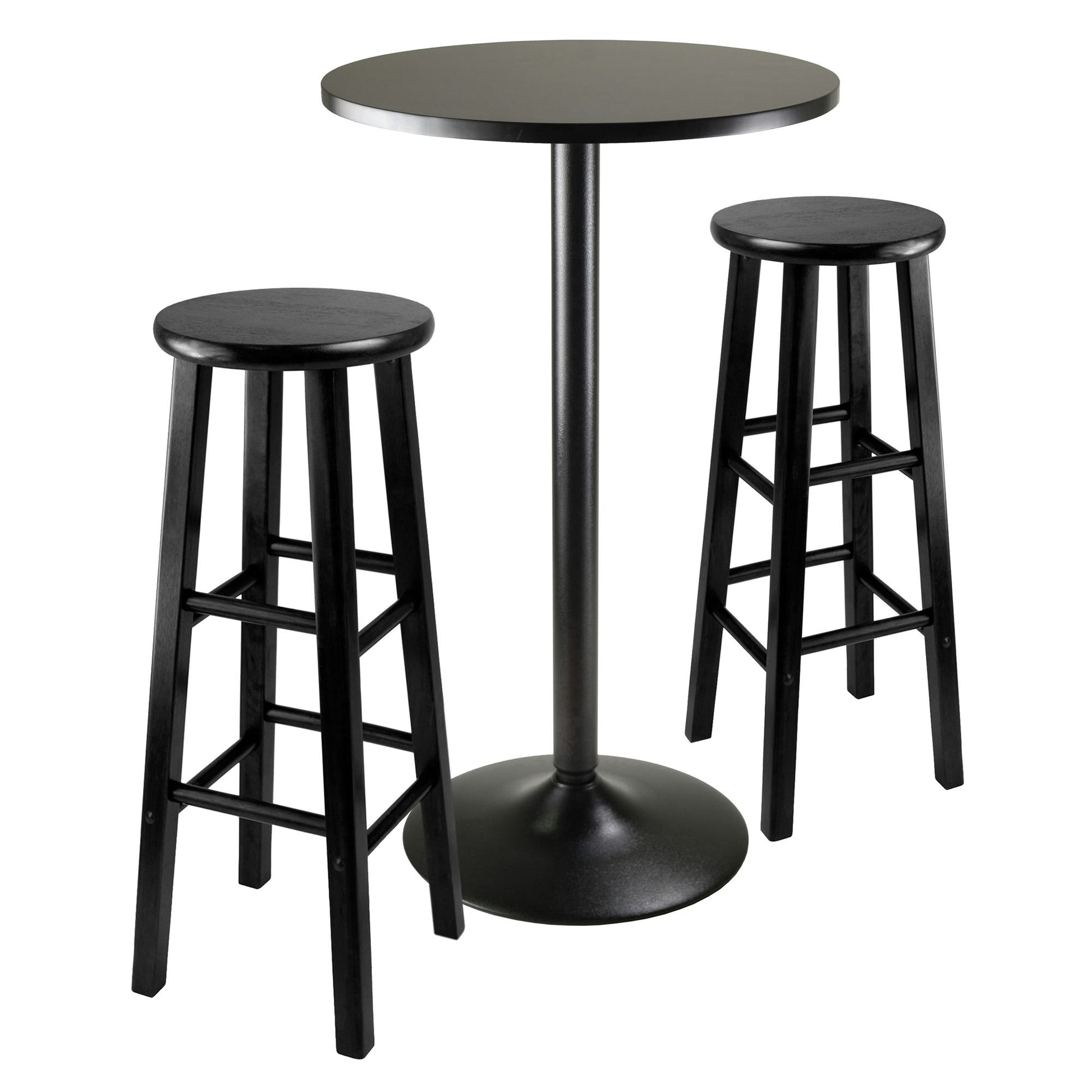 Obsidian 3-Pc Round Pub Table and Round Seat Bar Stools, Black