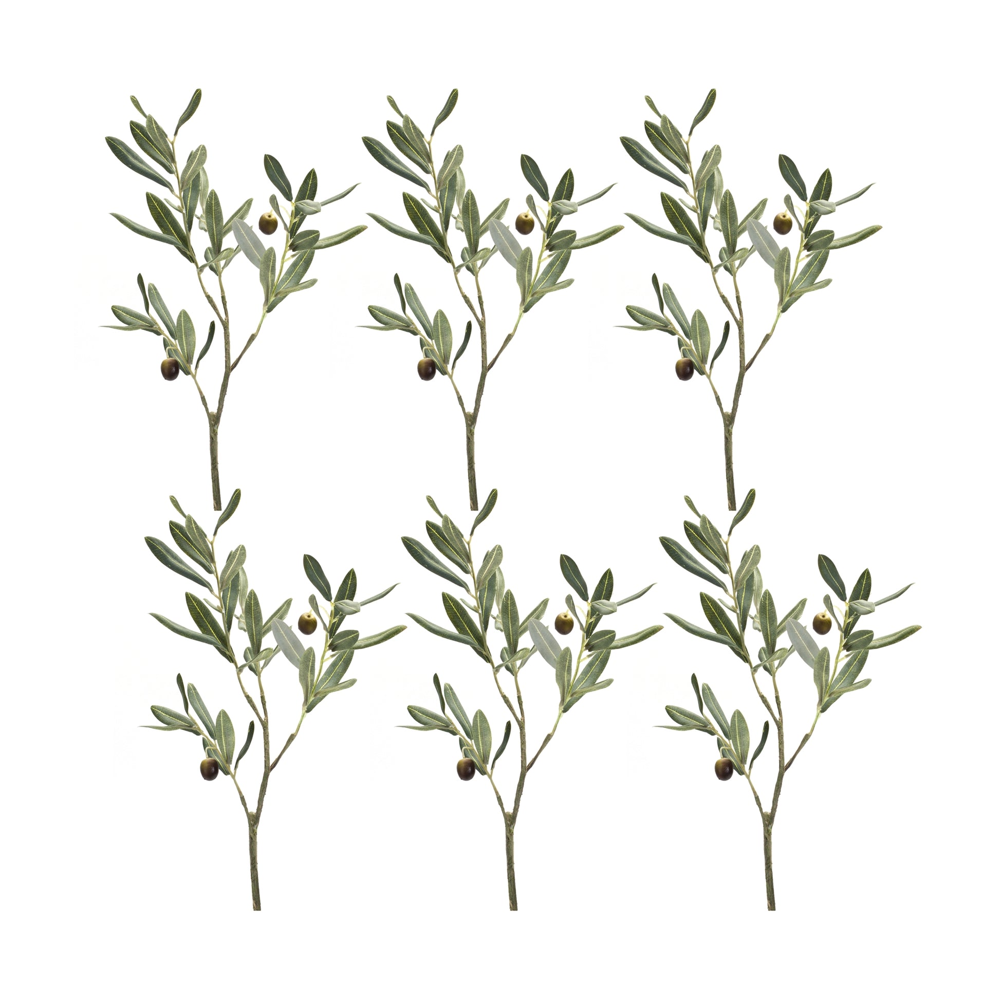 Add a pop of natural color to your home with this beautiful Olive Spray. Featuring set of 6 pieces, this set's varigated olive foliage is sure to fit in with any style of home decor. The quality polyester leaves are sure to last for seasons to come. Display the set in a vase or decorative container to complete the look.