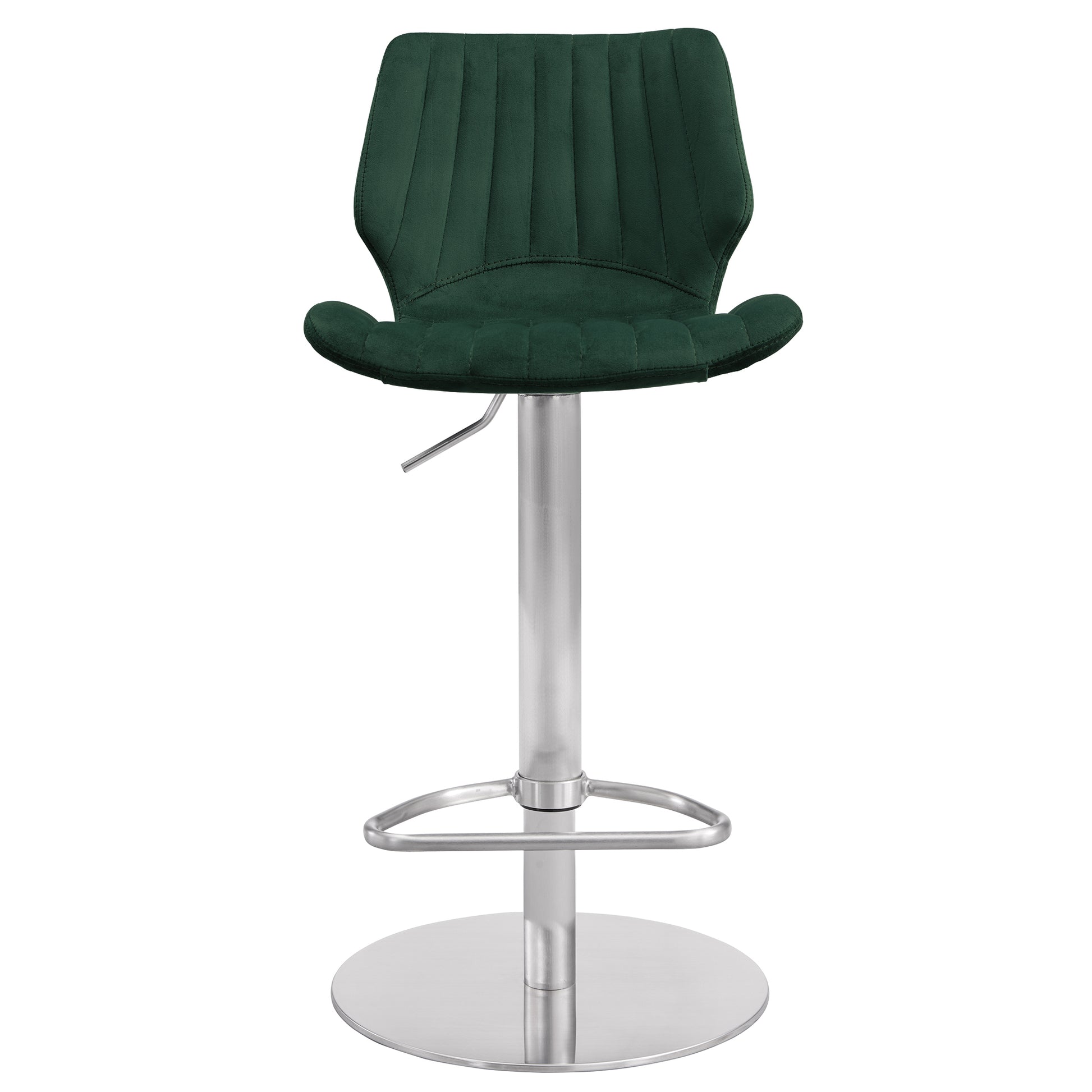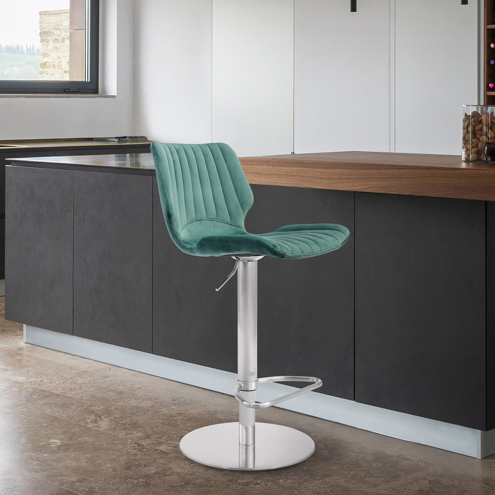 Oneida Adjustable Green Velvet and Brushed Stainless Steel Barstool