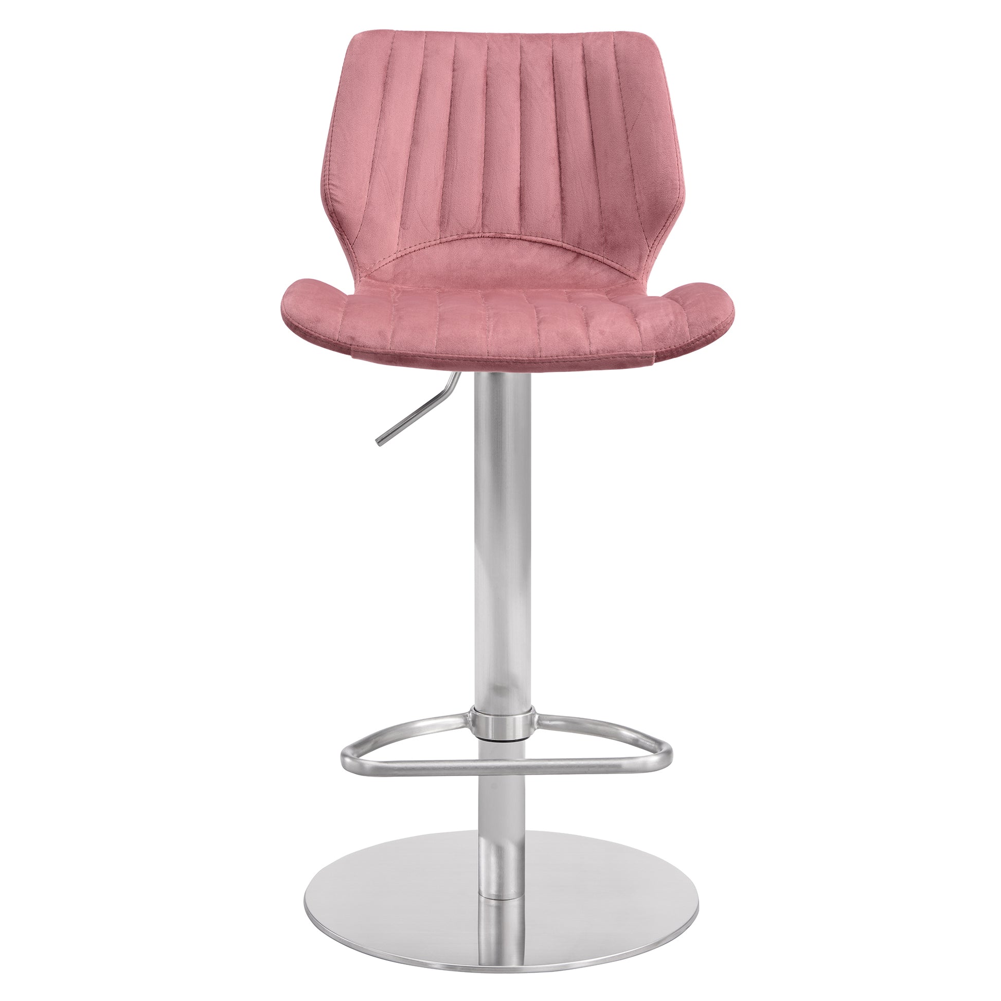 Oneida Adjustable Pink Velvet and Brushed Stainless Steel Barstool