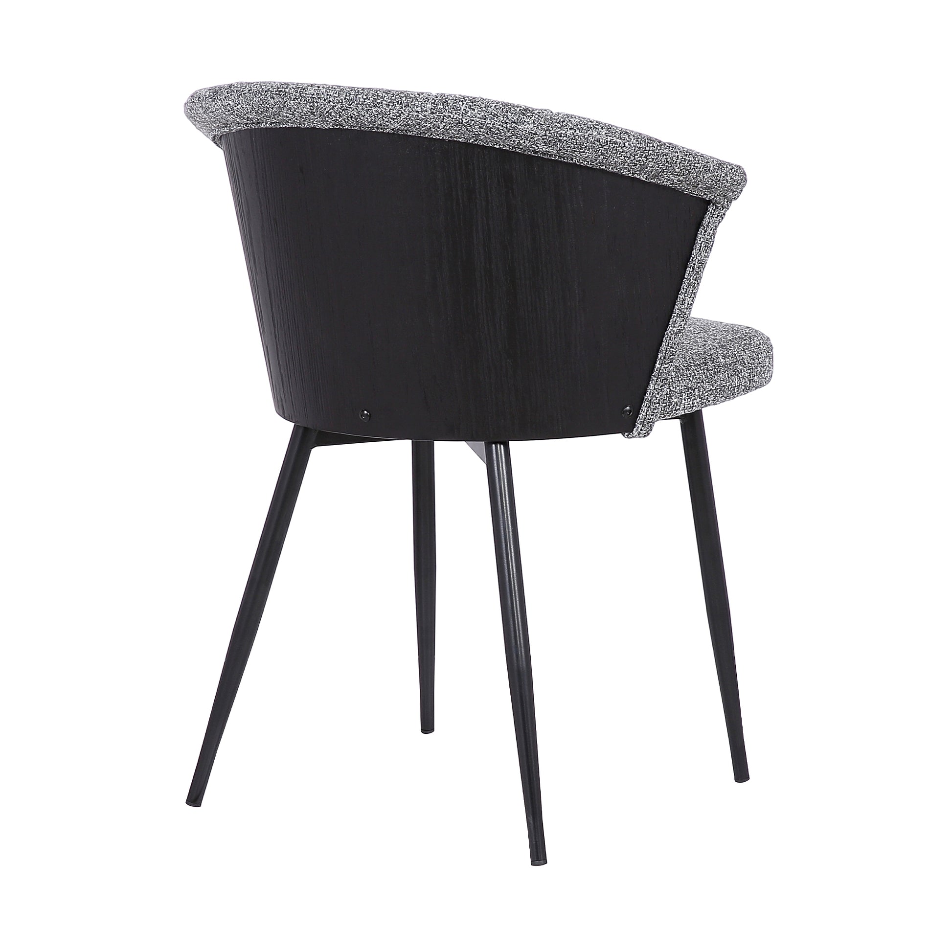 The Armen Living Orchid contemporary dining chair's rounded back design hugs you while you sit, providing you with an unmatched degree of comfort and lumbar support. The elegant Orchid is constructed out of a combination of Black Powder Coated steel and Poplar wood. This coupling of durable materials assures that the Orchid will last for many years without compromising on the chair's unique aesthetic appeal. The Orchid is padded with foam and upholstered in stylish Gray Fabric. The chair's texture is soft to the touch and certain to leave you feeling relaxed and comfortable. The Orchid's straight legs include rubber nibs, assuring that the chair will not damage hardwood or tile floors when dragged. The Orchid is an excellent choice for the dining room, but versatile enough to serve as additional seating in just about any room of the house.