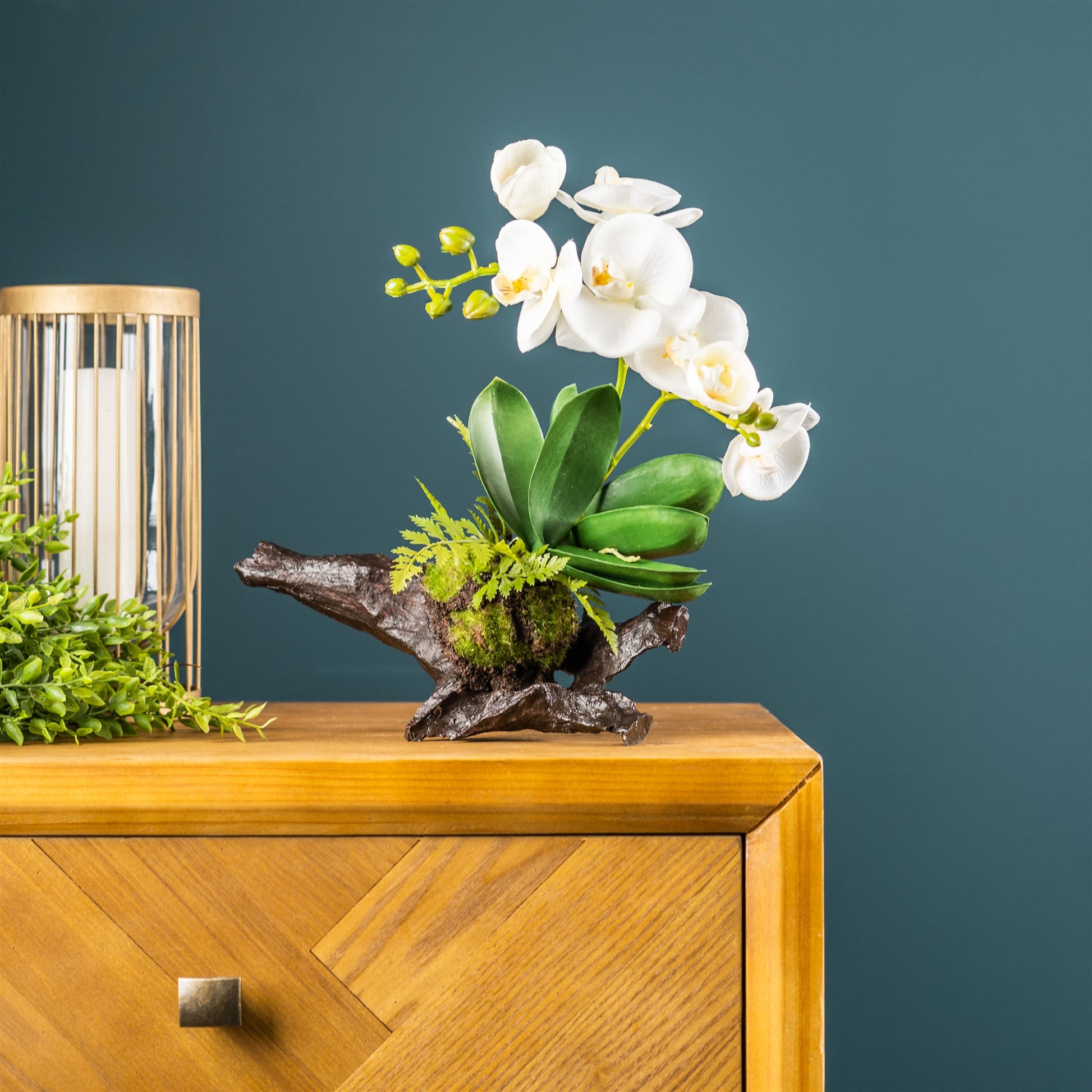 Add a pop of natural color to your home with this beautiful Orchid Premade. Featuring 2 pieces, this set's varigated Orchid foliage is sure to fit in with any style of home decor. The quality polyester flowers and leaves are sure to last for seasons to come. Display the set in a vase or decorative container to complete the look.