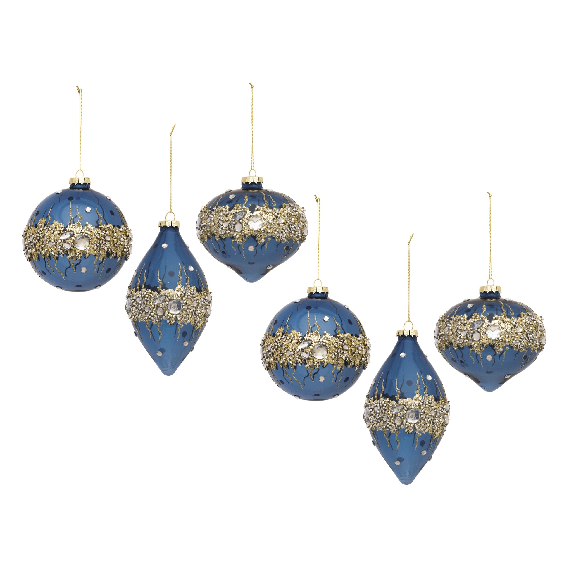Adorn your Christmas Tree with this beautiful set of Ball Ornaments. Featuring three assorted designs, the classic ball and onion ornament design paired with the cool blue finish with gold and silver bead accents makes this set the perfect addition to your holiday tree decor. The pieces can be used as gifts for friends to cherish, or you can display the set on your own Christmas tree and enjoy them for years to come.