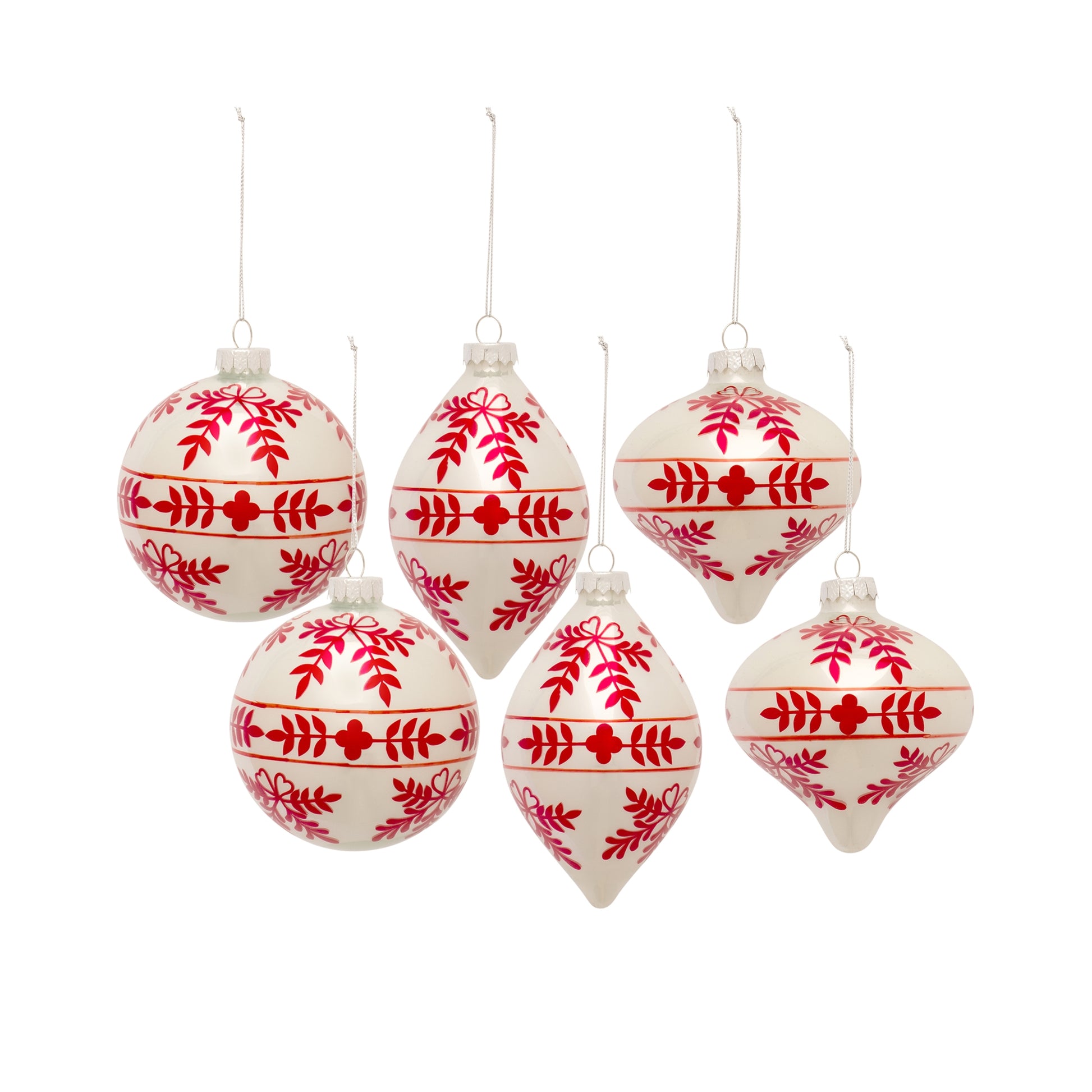 Adorn your Christmas Tree with this beautiful set of Ball Ornaments. Featuring three assorted designs, the classic ball and onion ornament design paired with the chic red and white finish with ornate patterned accent makes this set the perfect addition to your holiday tree decor. The pieces can be used as gifts for friends to cherish, or you can display the set on your own Christmas tree and enjoy them for years to come.