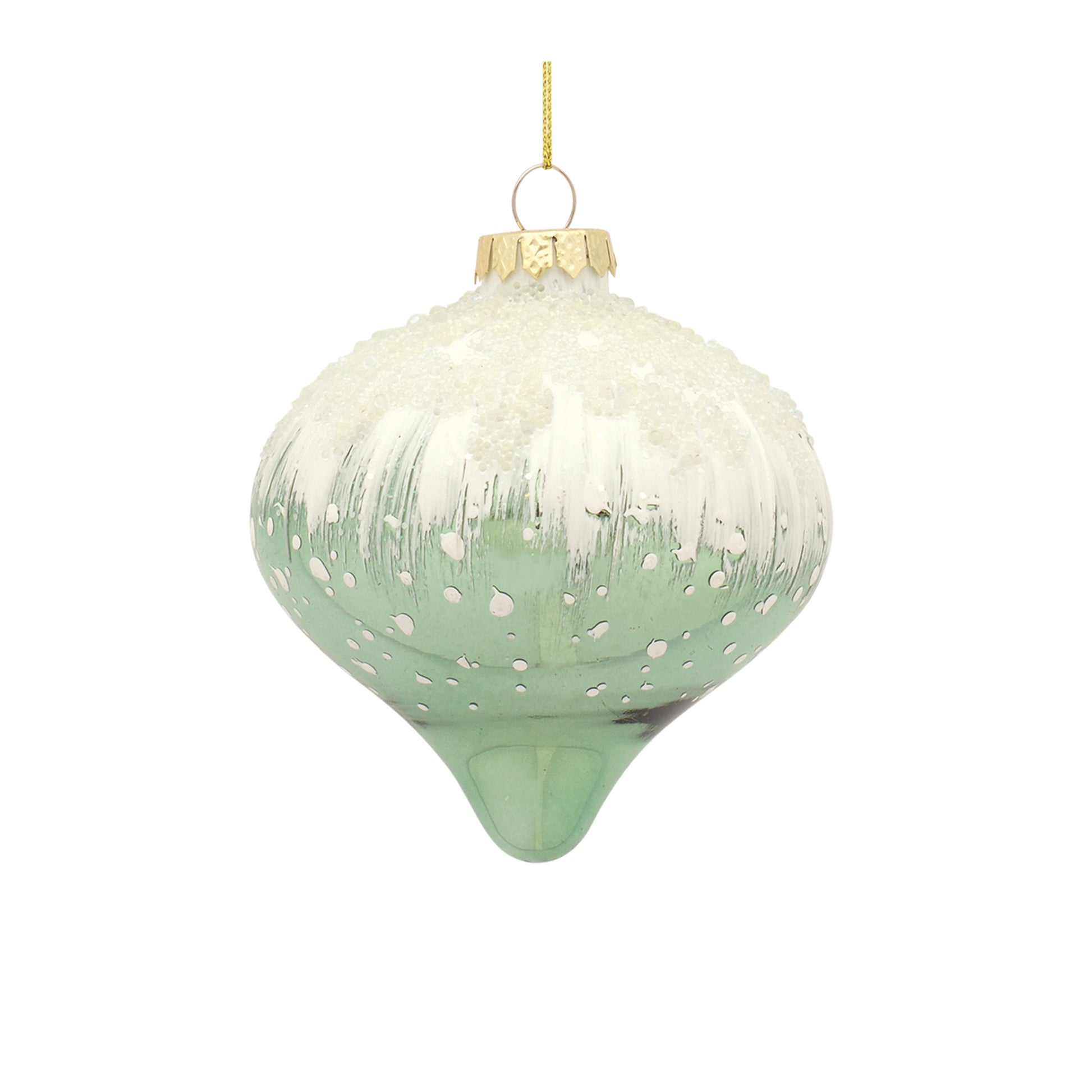 Adorn your Christmas Tree with this beautiful set of Ball Ornaments. Featuring three assorted designs, the classic ball and onion ornament design paired with the chic green and white finish with "snowy" accent makes this set the perfect addition to your holiday tree decor. The pieces can be used as gifts for friends to cherish, or you can display the set on your own Christmas tree and enjoy them for years to come.