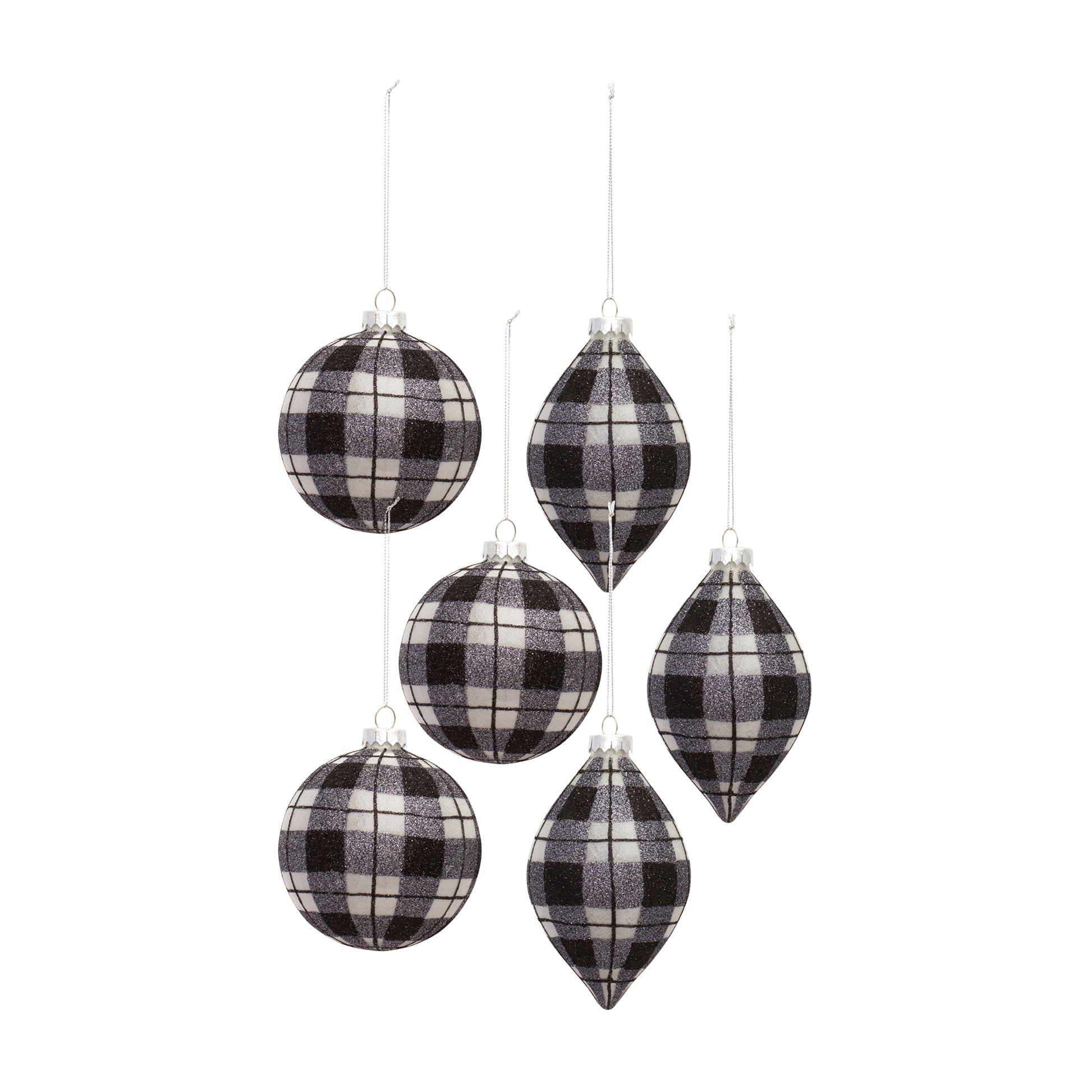 Adorn your Christmas Tree with this beautiful set of Buffalo Plaid Ball Ornaments. Featuring two assorted designs, the classic ball and onion ornament design paired with the trendy black and white buffalo plaid finish makes this set the perfect addition to your holiday tree decor. The pieces can be used as gifts for friends to cherish, or you can display the set on your own Christmas tree and enjoy them for years to come.