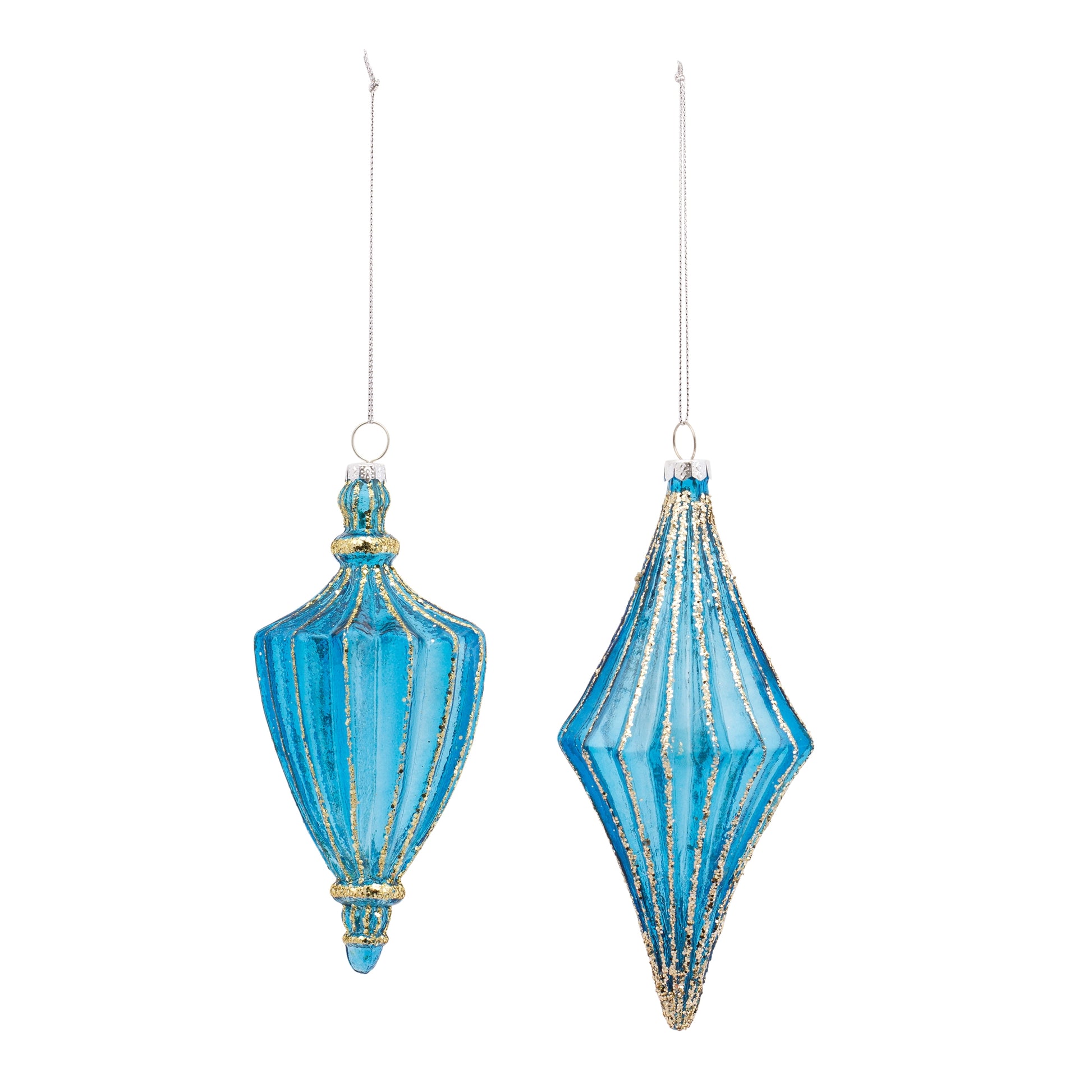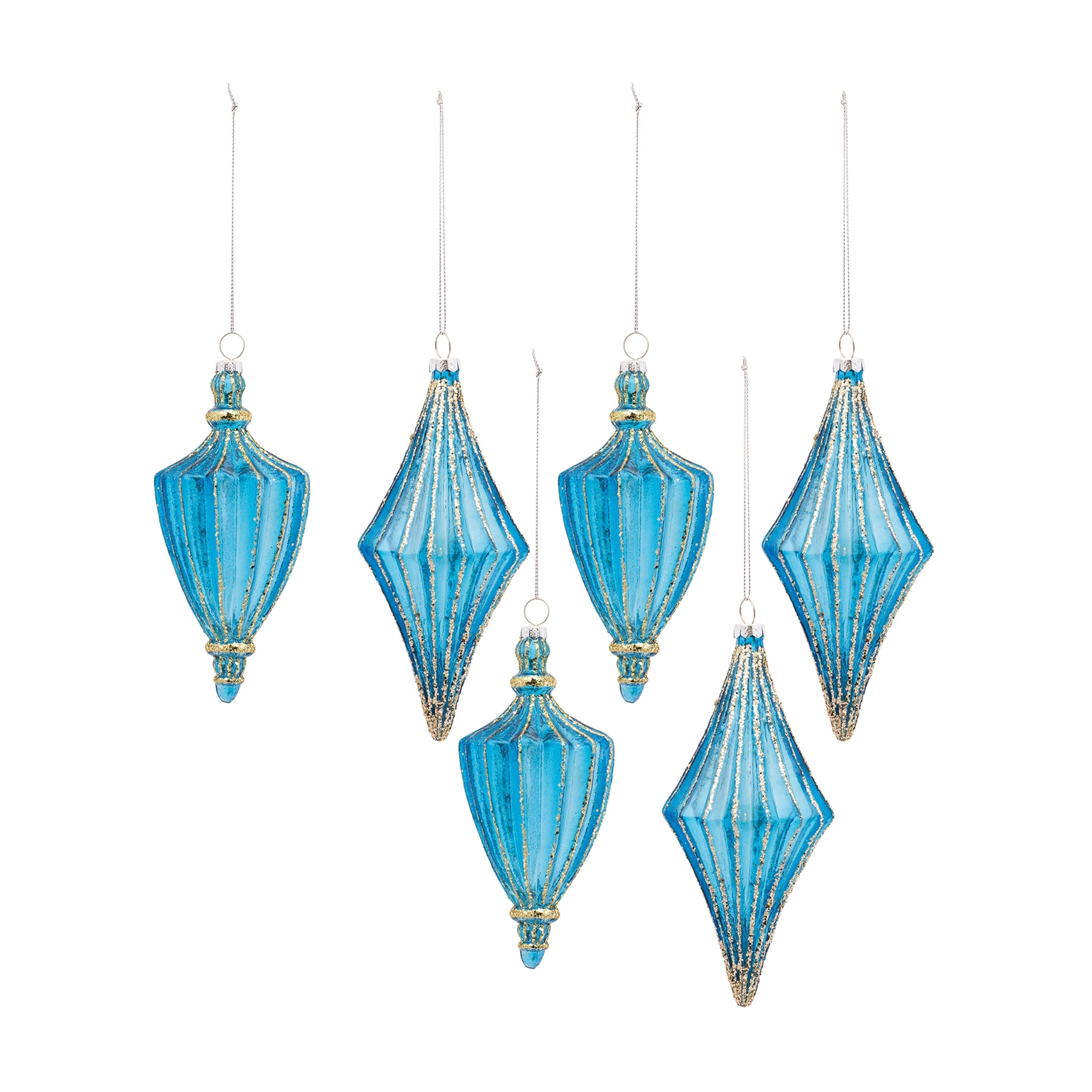 Adorn your Christmas Tree with this beautiful set of Drop Ornaments. Featuring two assorted designs, the traditional drop ornament design paired with the cool blue finish with gold accent makes this set the perfect addition to your holiday tree decor. The pieces can be used as gifts for friends to cherish, or you can display the set on your own Christmas tree and enjoy them for years to come.