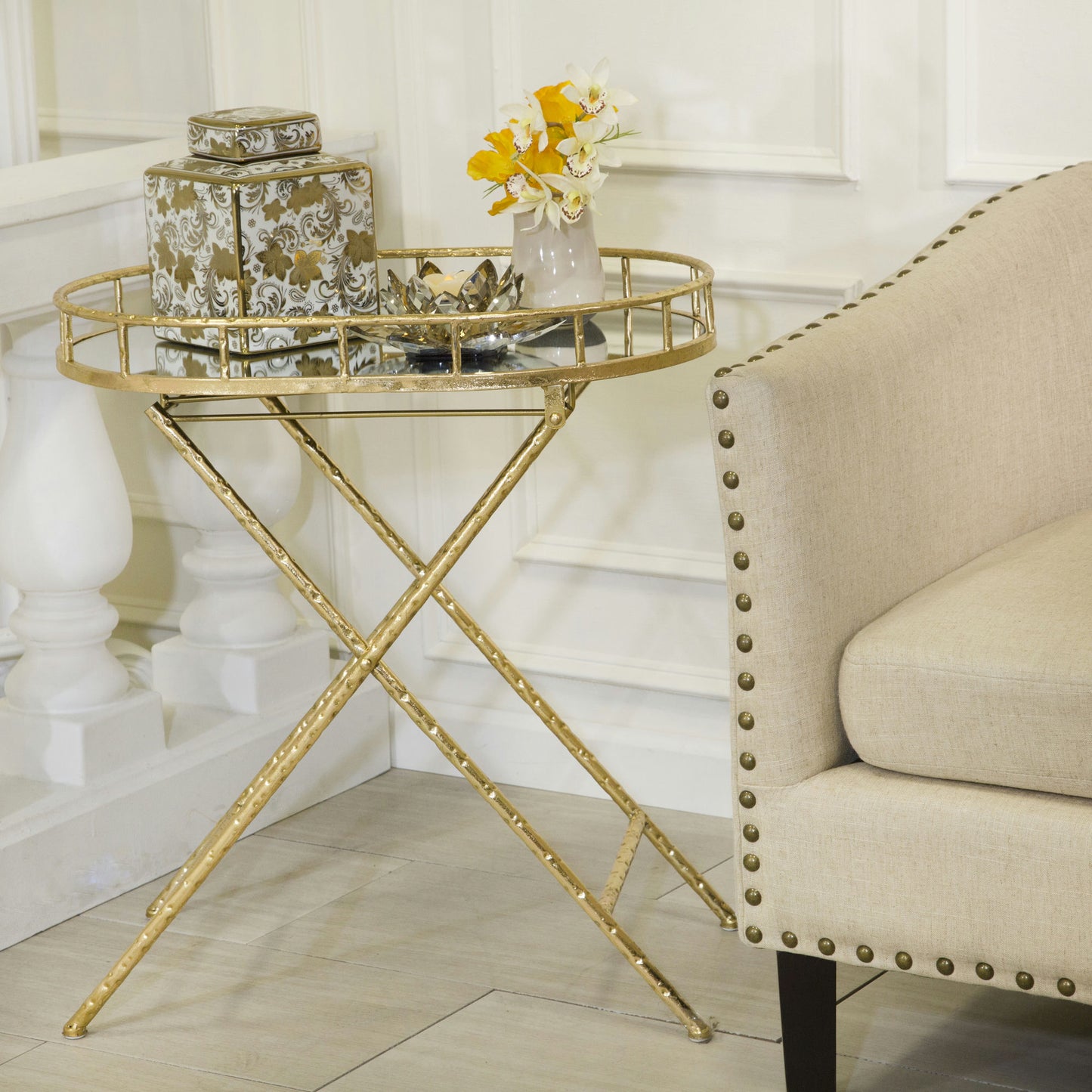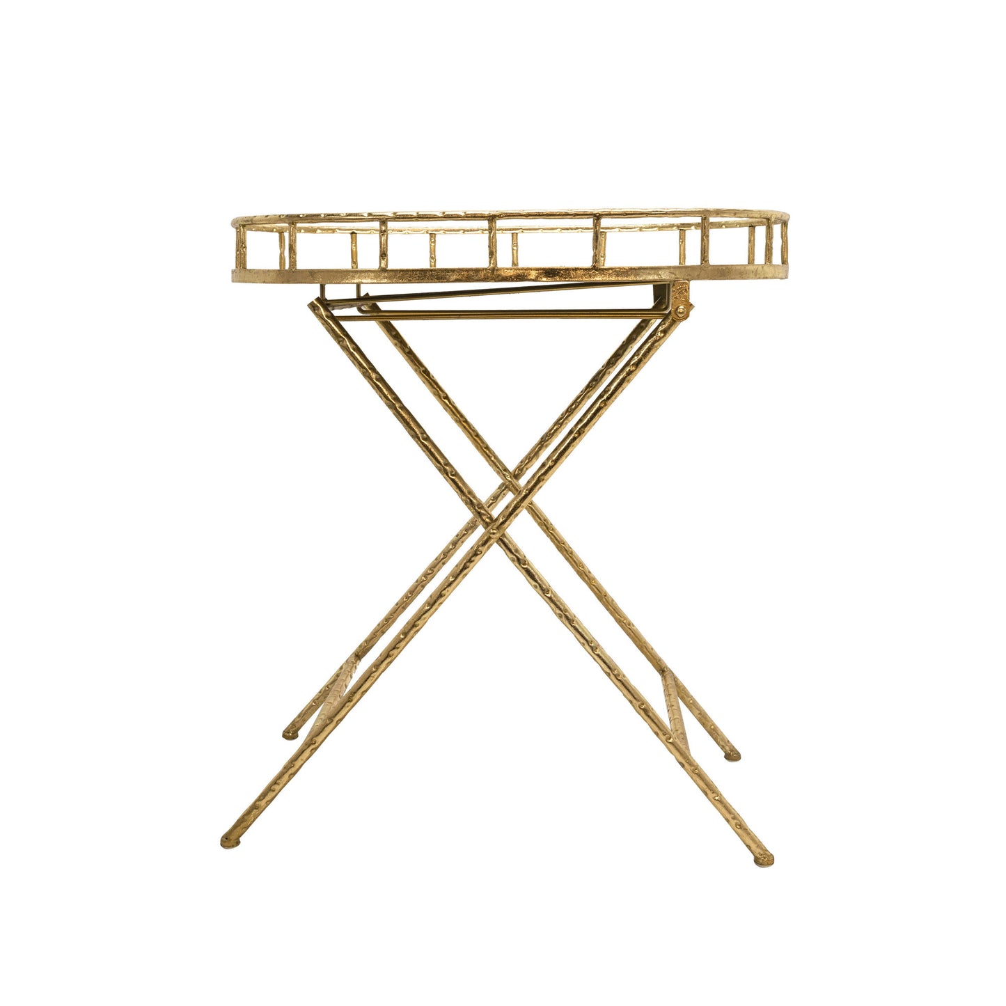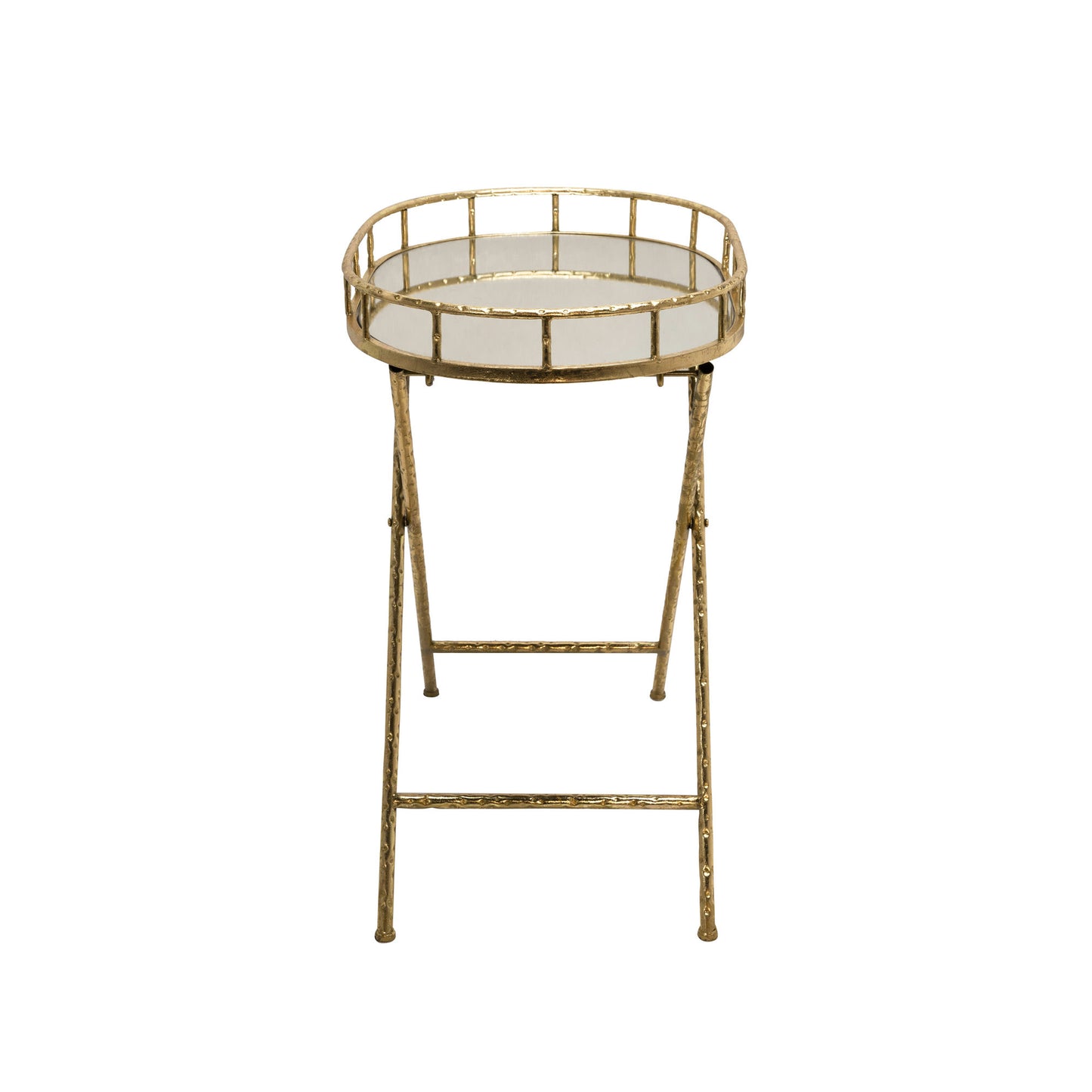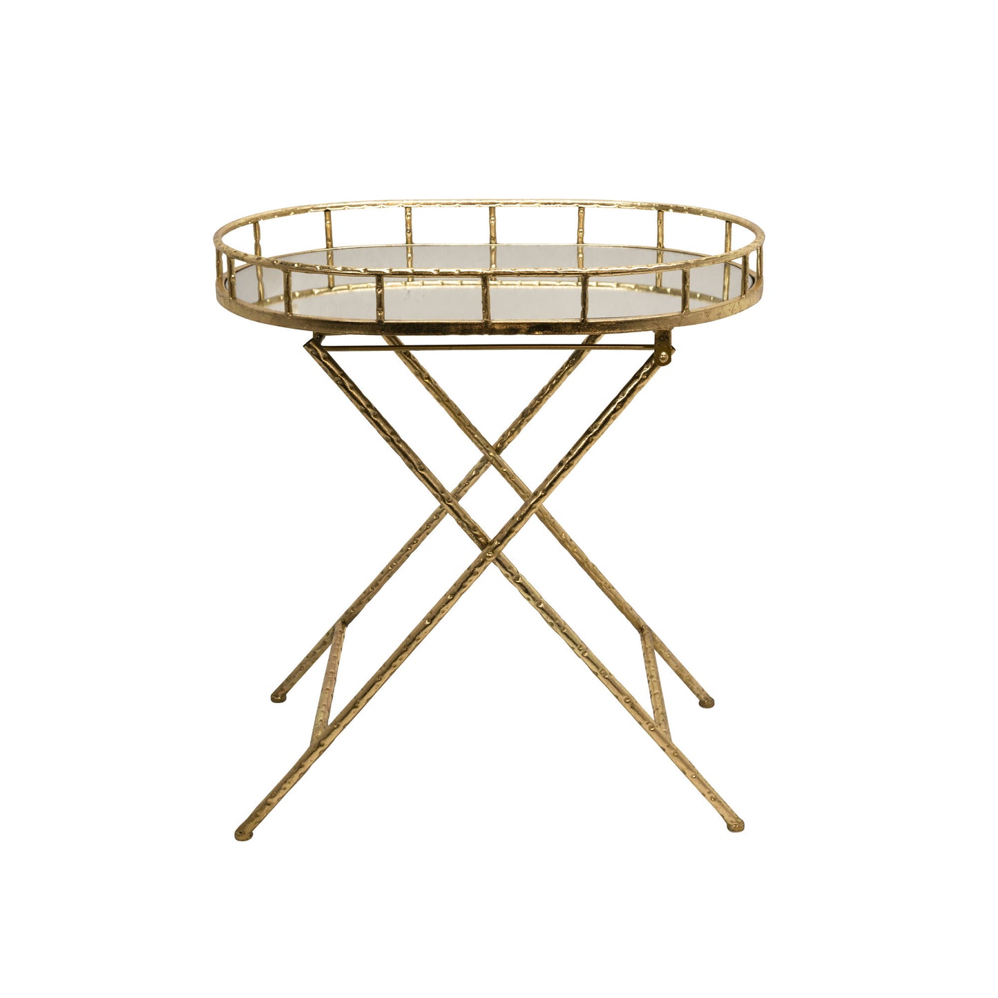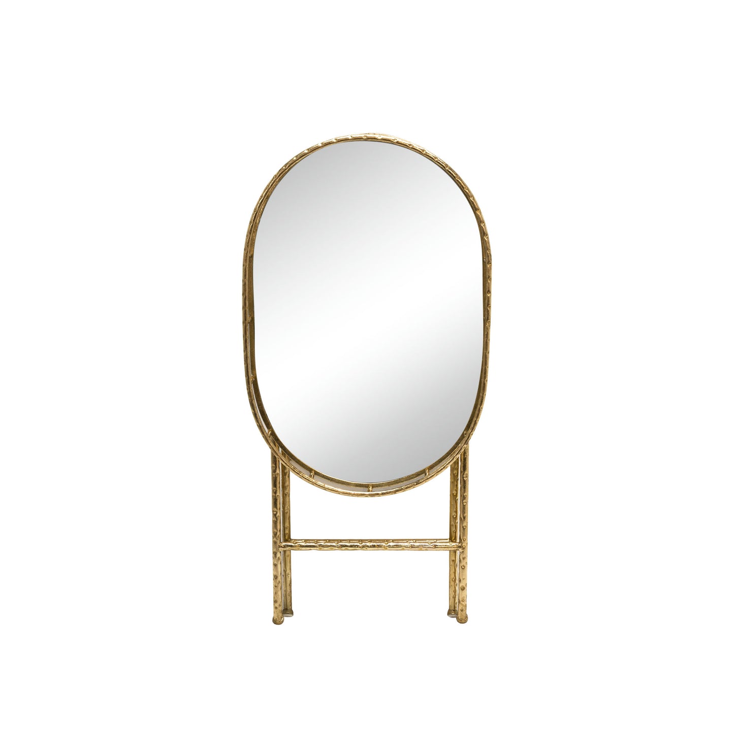 Oval Gold Metal Accent Table, Mirror Top