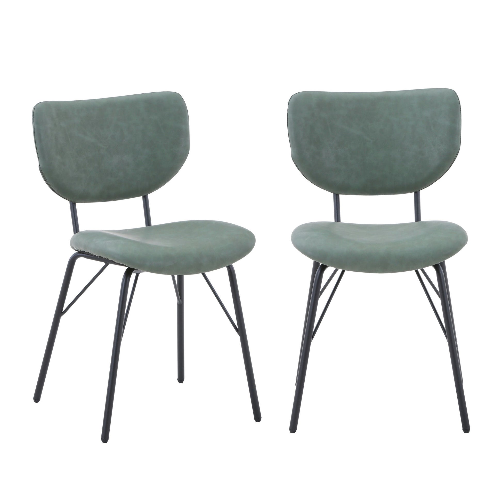 Upgrade the comfort and style of your home with this set of two Owen Dining Chairs. Featuring a modern split-back design and plush faux leather upholstery that creates a comfortable seating experience. The metal frame is solid and assembly is fast and easy using the included hardware pack. Stylish and functional, the Owen dining chair is perfect for additional in your kitchen or dining room. Elevate your living space with this set of two Owen Dining Chairs.