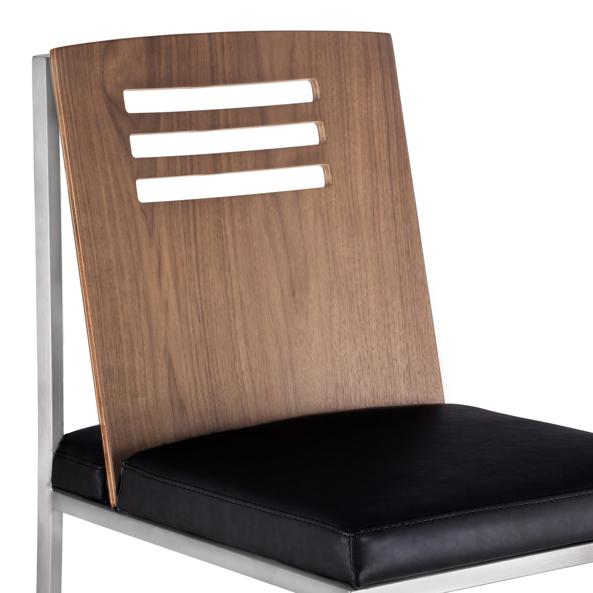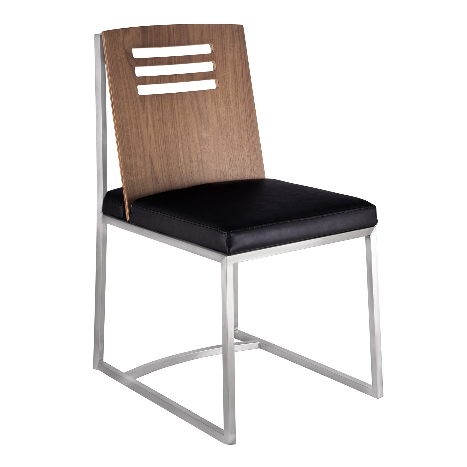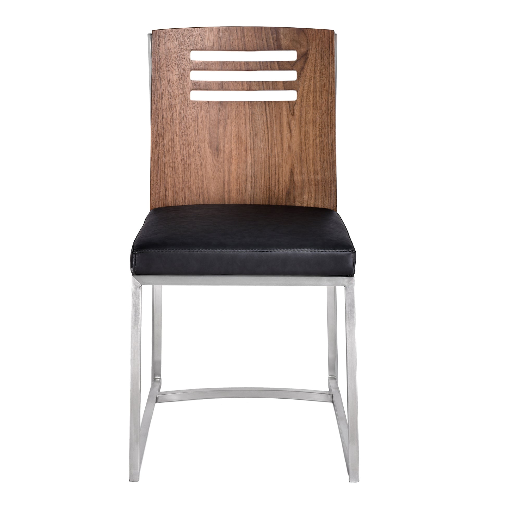 Oxford Dining Chair in Brushed Stainless Steel in Black Faux Leather (Set of 2)
