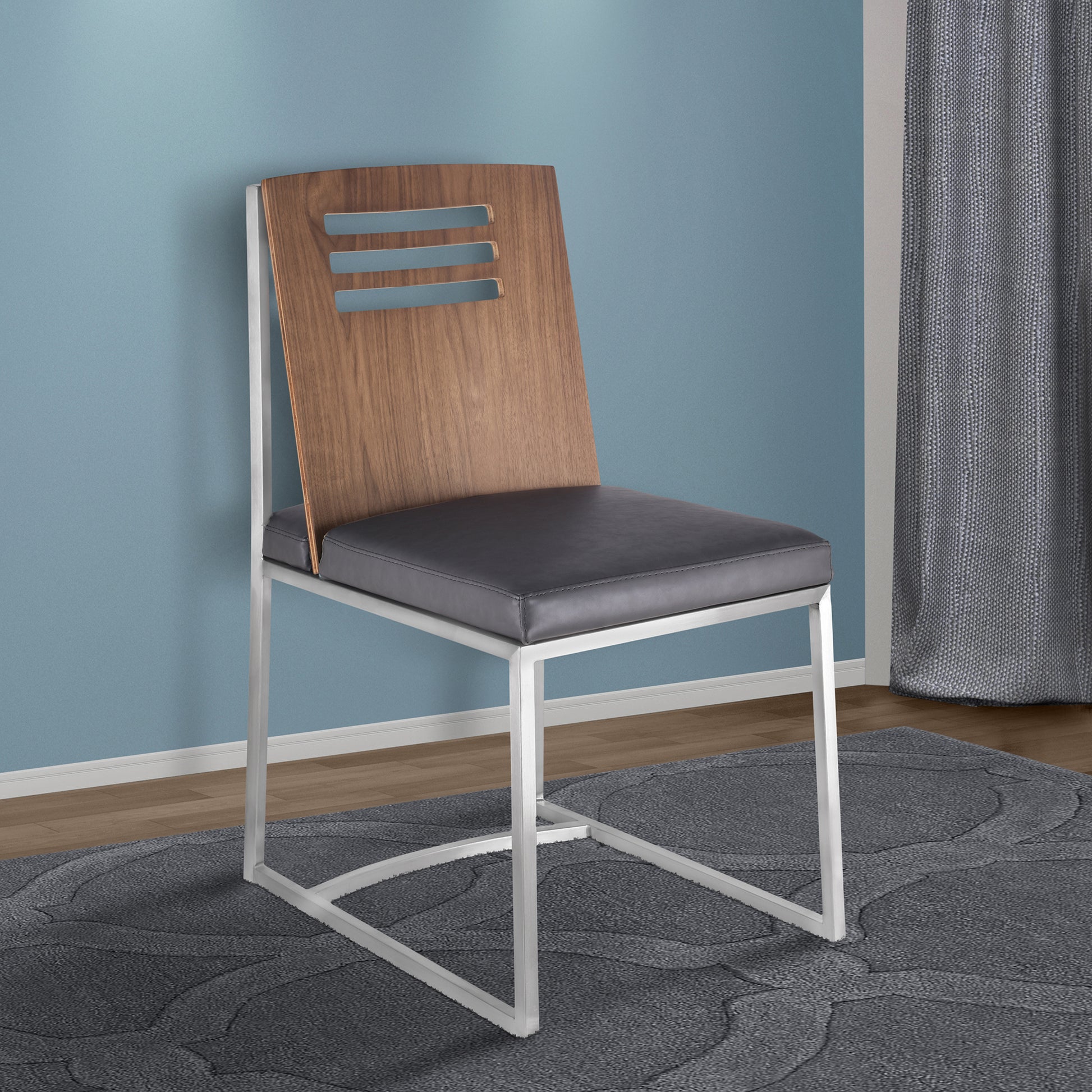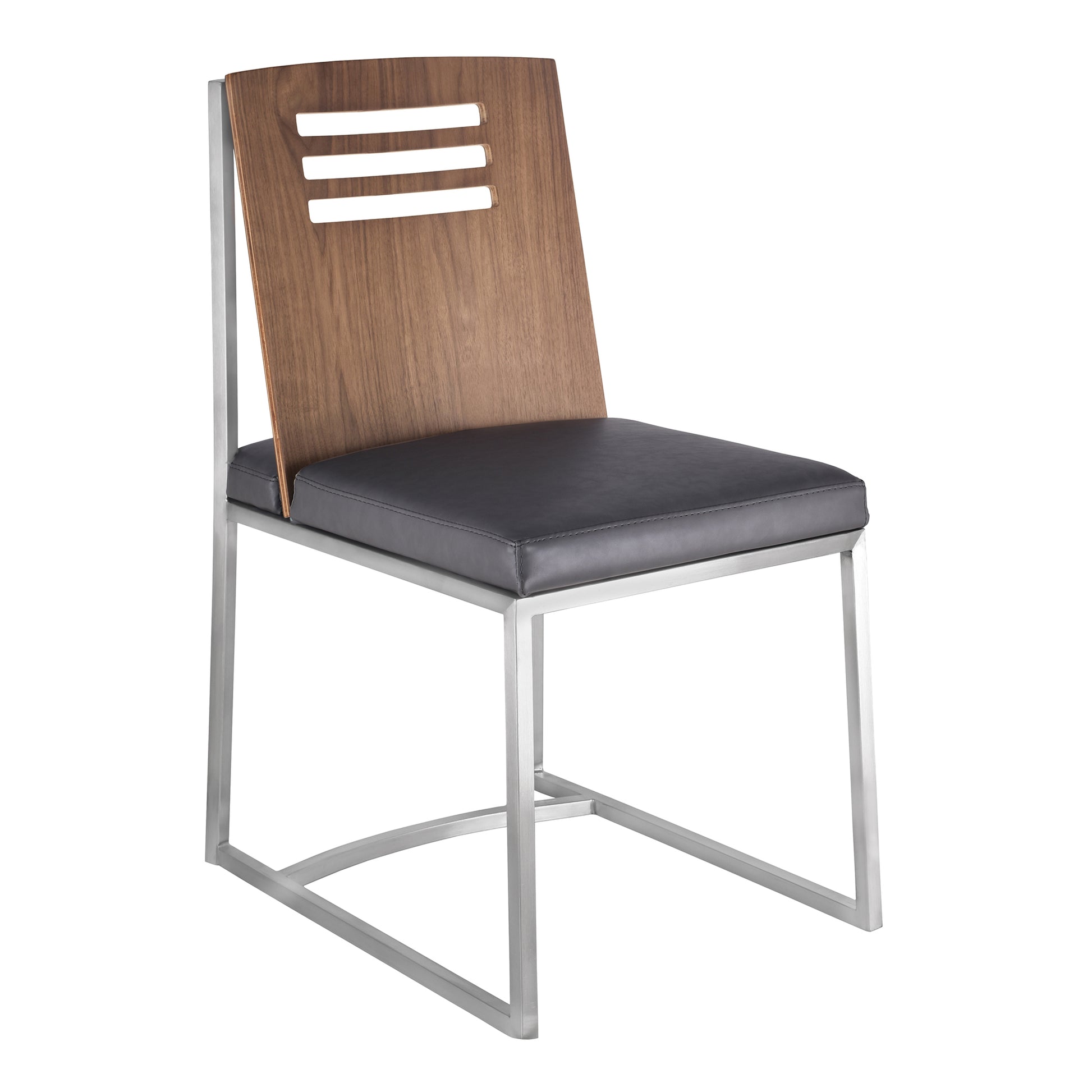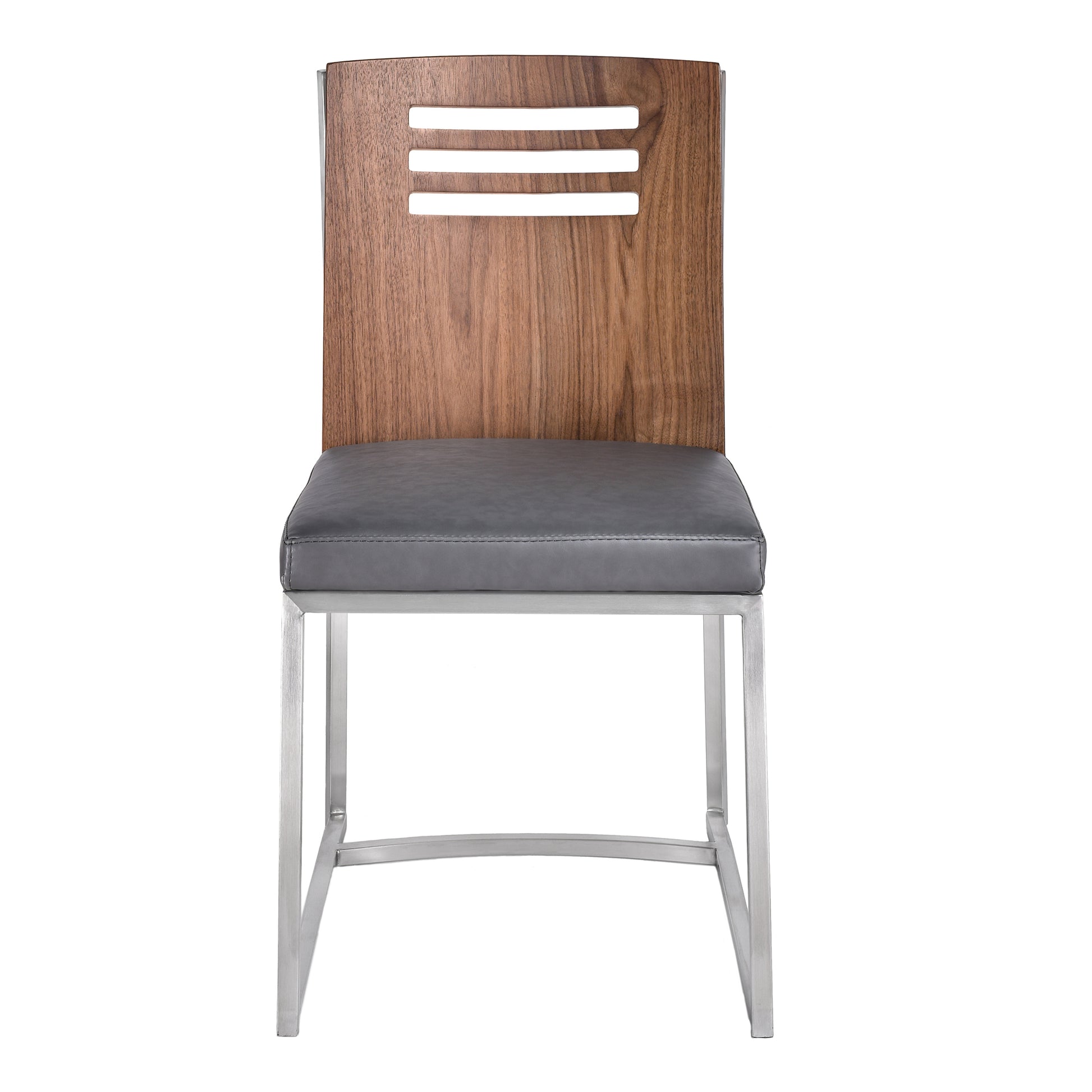 The Armen Living contemporary Oxford dining chair is a great piece to have in the modern home. This stylish chair is certain to fit perfectly in just about any dining room while also remaining practical enough to function as additional seating around the house. The Oxford's frame is made of a durable brushed stainless steel that offers quality and assures that the chair will maintain its reliability for many years to come. The Oxford is offered in two gorgeous fabric colors: vintage Gray and vintage black faux leather.