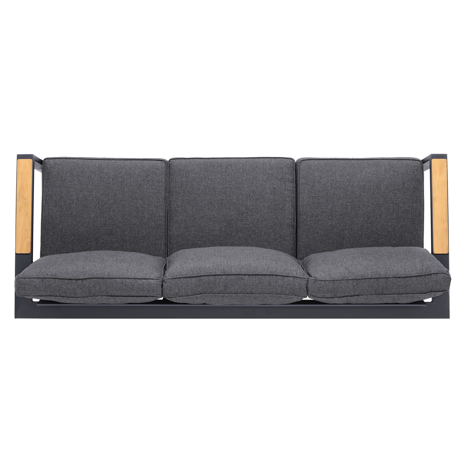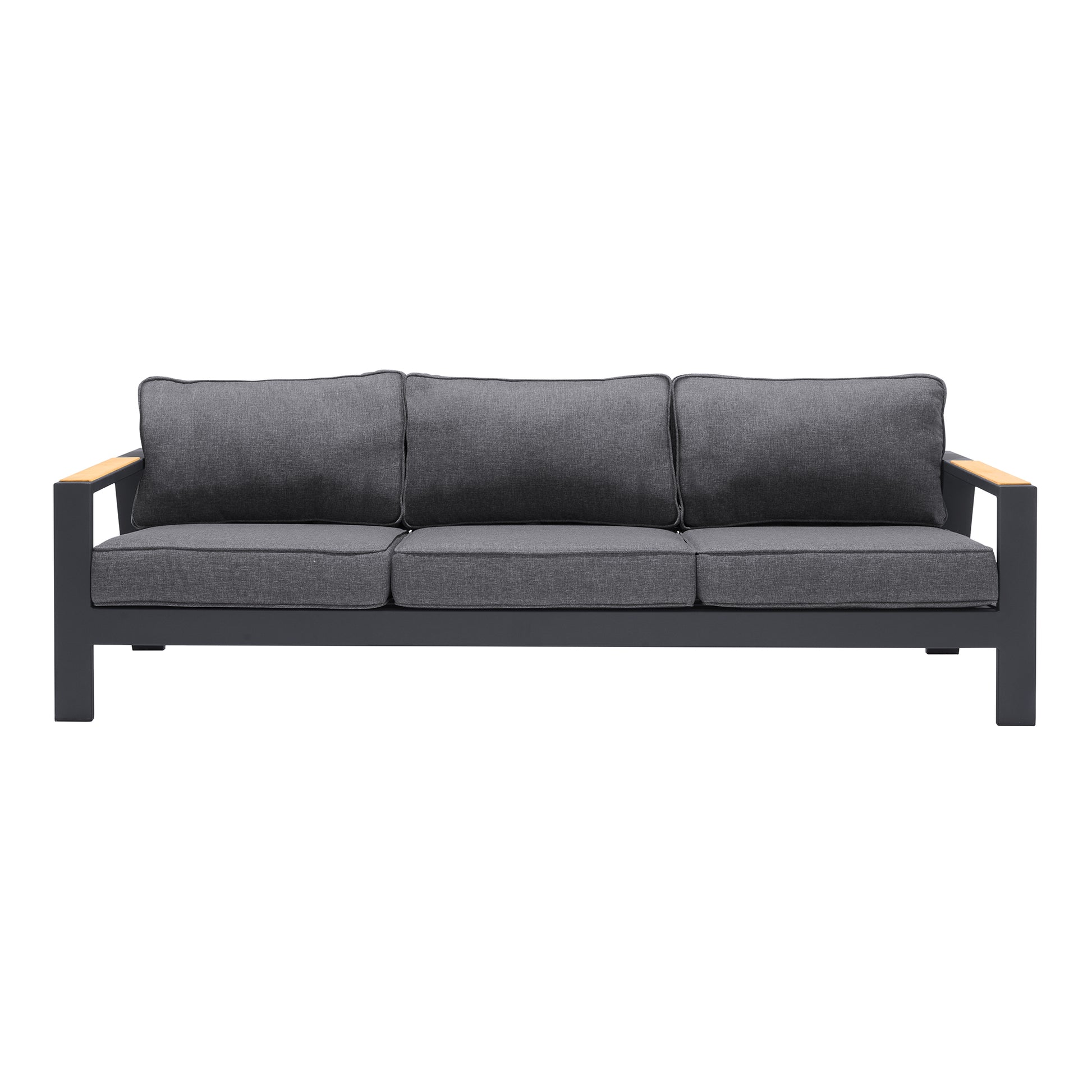 Palau Outdoor Sofa in Dark Grey with Natural Teak Wood Accent and Cushions