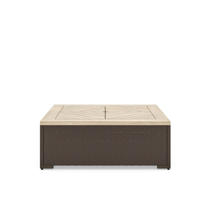 You've always got a place to kick up your feet or set down your drink with this Homestyles Palm Springs Coffee Table. The water-resistant Acacia wood top features two removable sections that reveal hidden plastic storage bins. Perfect for indoor or outdoor use, the all-weather rattan is hand-crafted by artisans to deliver solid performance year after year.