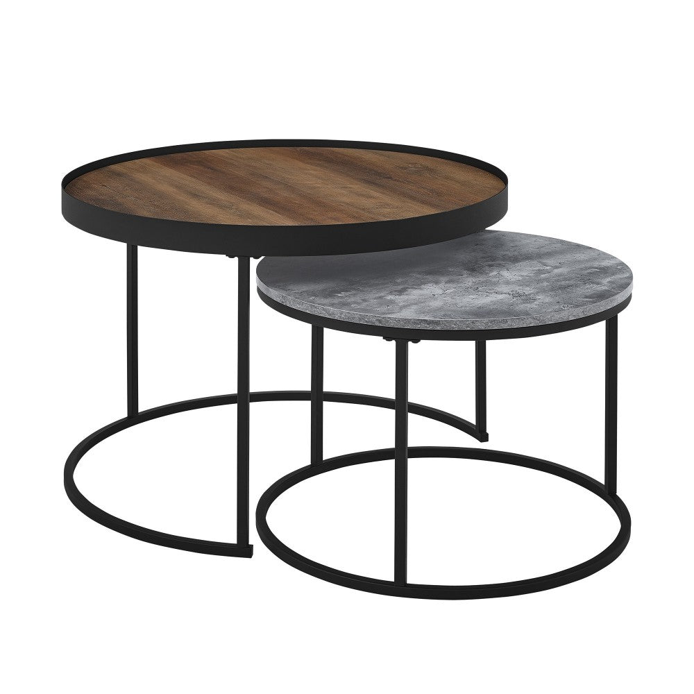 Pamela 30" Two-Tone Nesting Coffee Tables - Rustic Oak/Faux Concrete