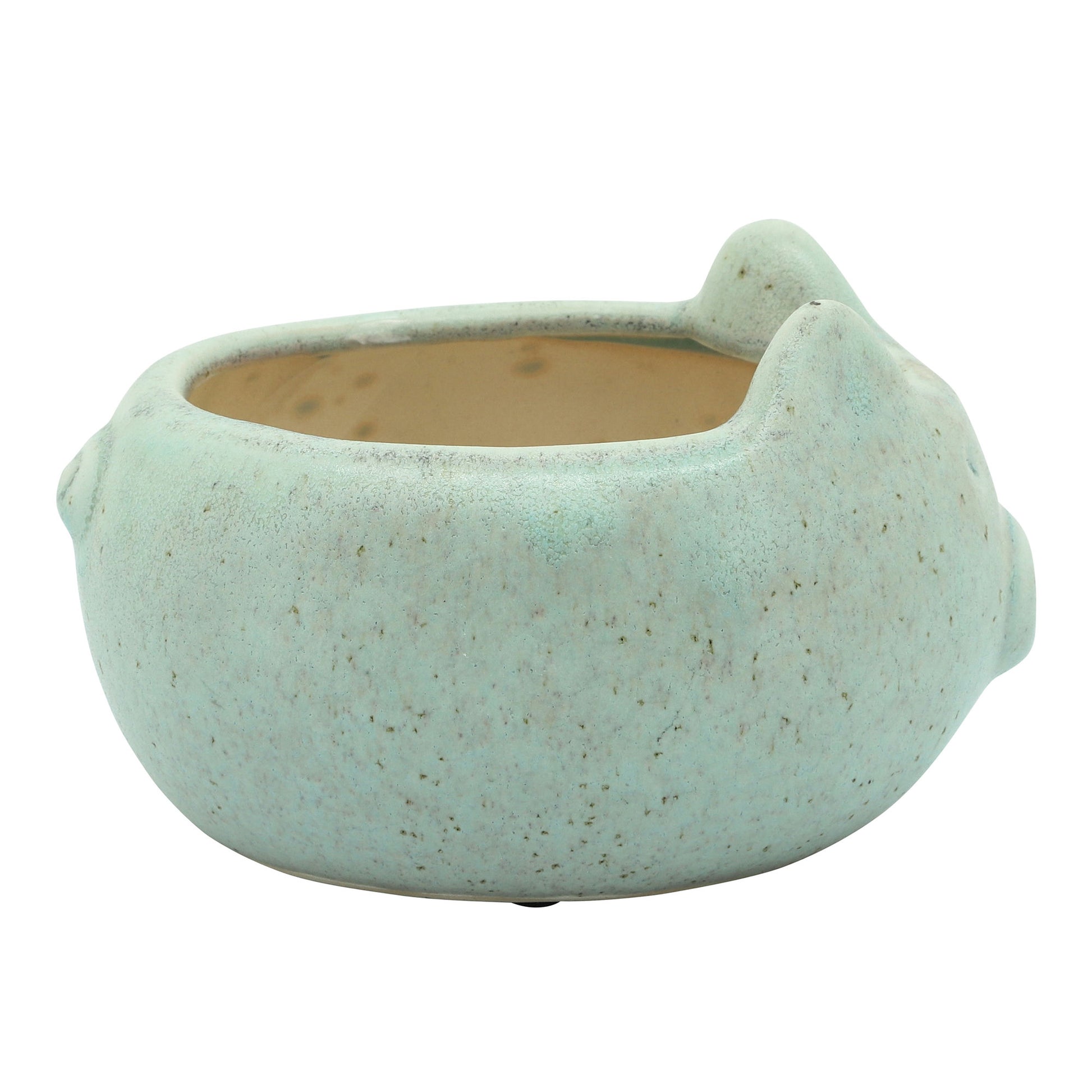 Small light blue ceramic pig planter. This little fellow is suitable for home decoration and it can also make your office unique. This planter makes an eye catcher in any space.Sagebrook Home has been formed from a love of design, a commitment to service and a dedication to quality. They create and import fashion forward items in the most popular design styles. Backed with years of experience in the textile field, They are now providing a complete Home decor story. the combination of wall decor, furniture, lighting and Home accessories are all coordinated with textiles to provide a complete Home look. Sagebrook Home is committed to providing the best Home decor and accent pieces at value prices.