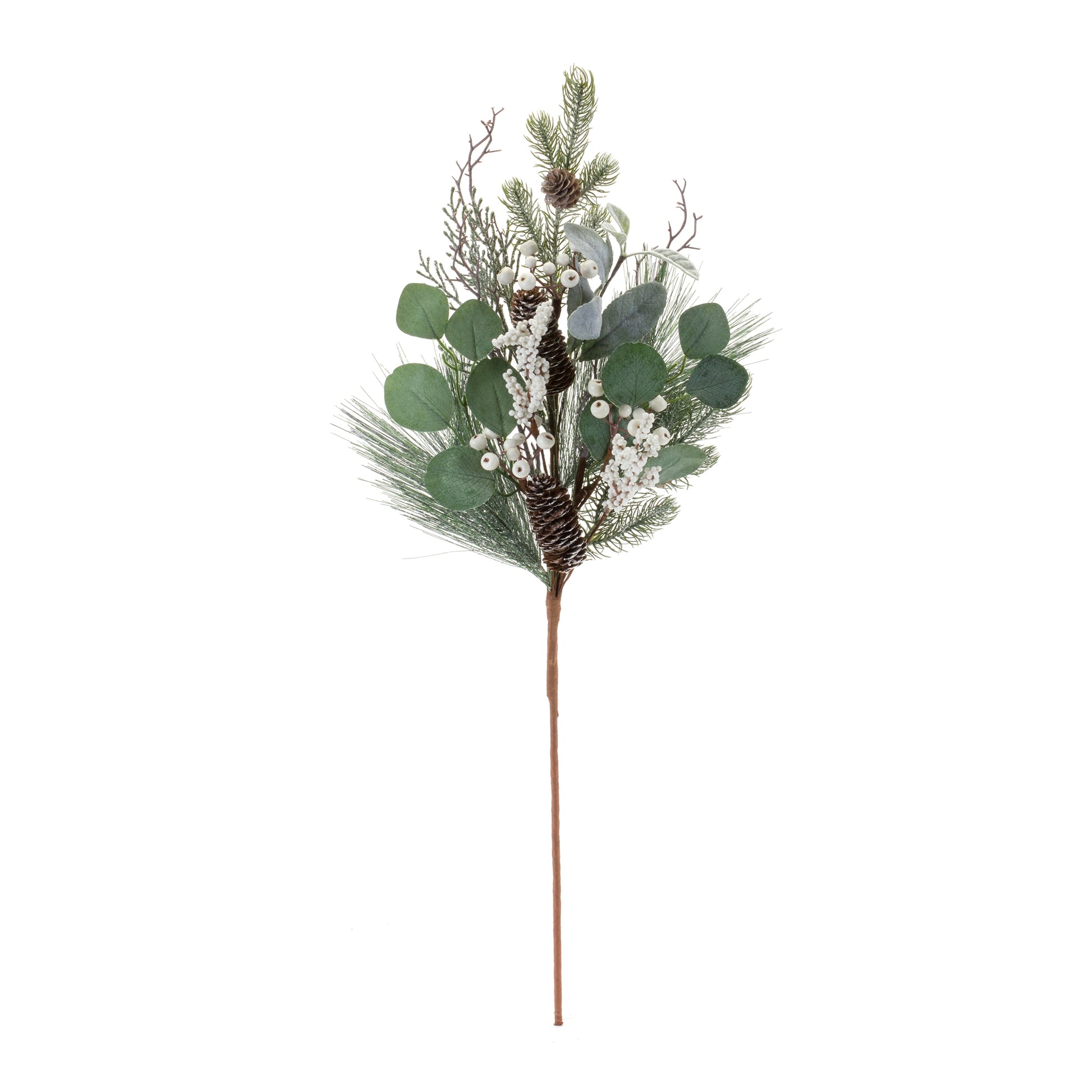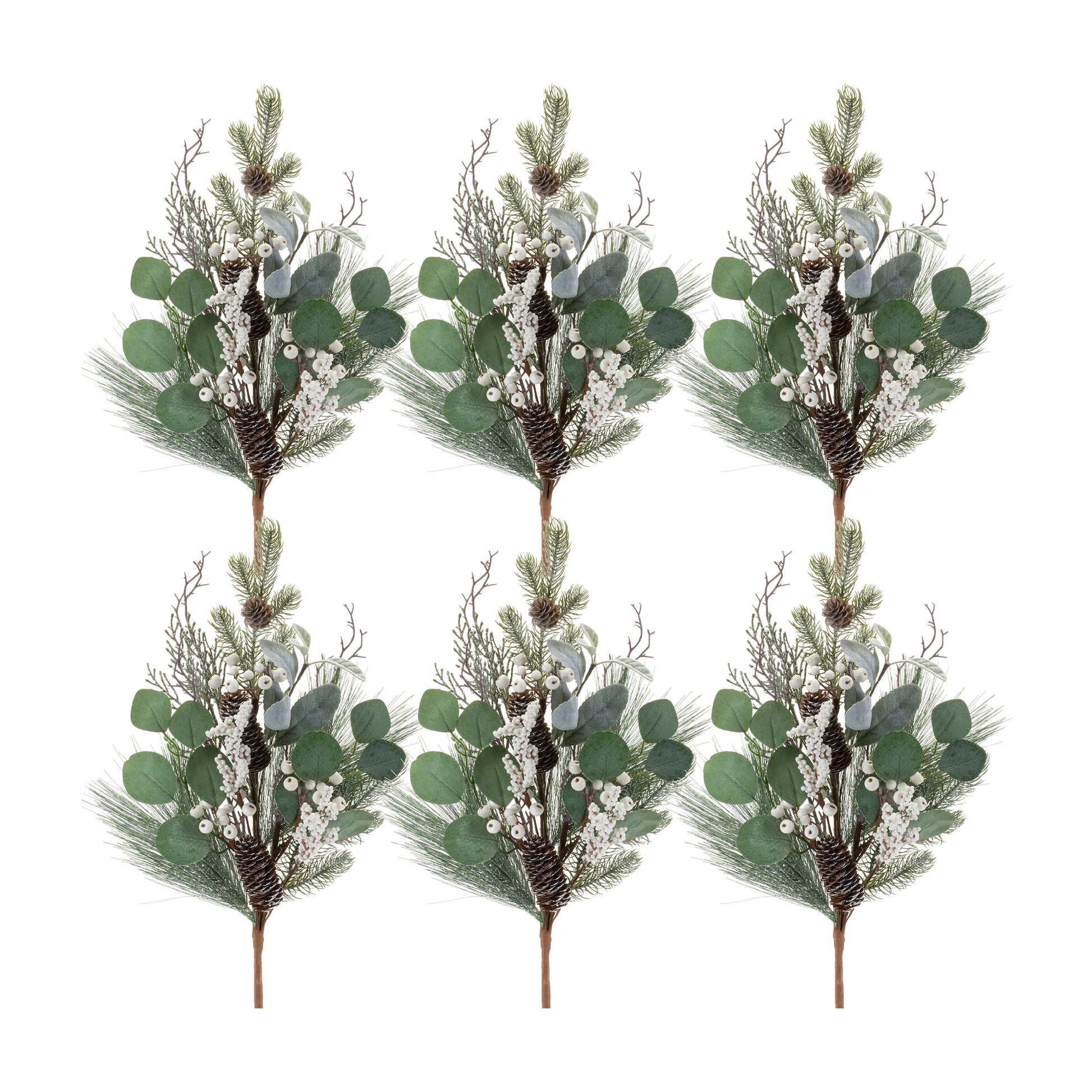 Ring in the holiday season with this beautiful set of Eucalyptus and Pine Sprays. Featuring six pieces, this set would be a great addition to your Christmas centerpiece or table arrangement. The varigated eucalyptus and pine foliage paired with the pinecone and berry accents is the perfect combination to create a stunning Christmas display. Add this set to a table vase to make a statement.