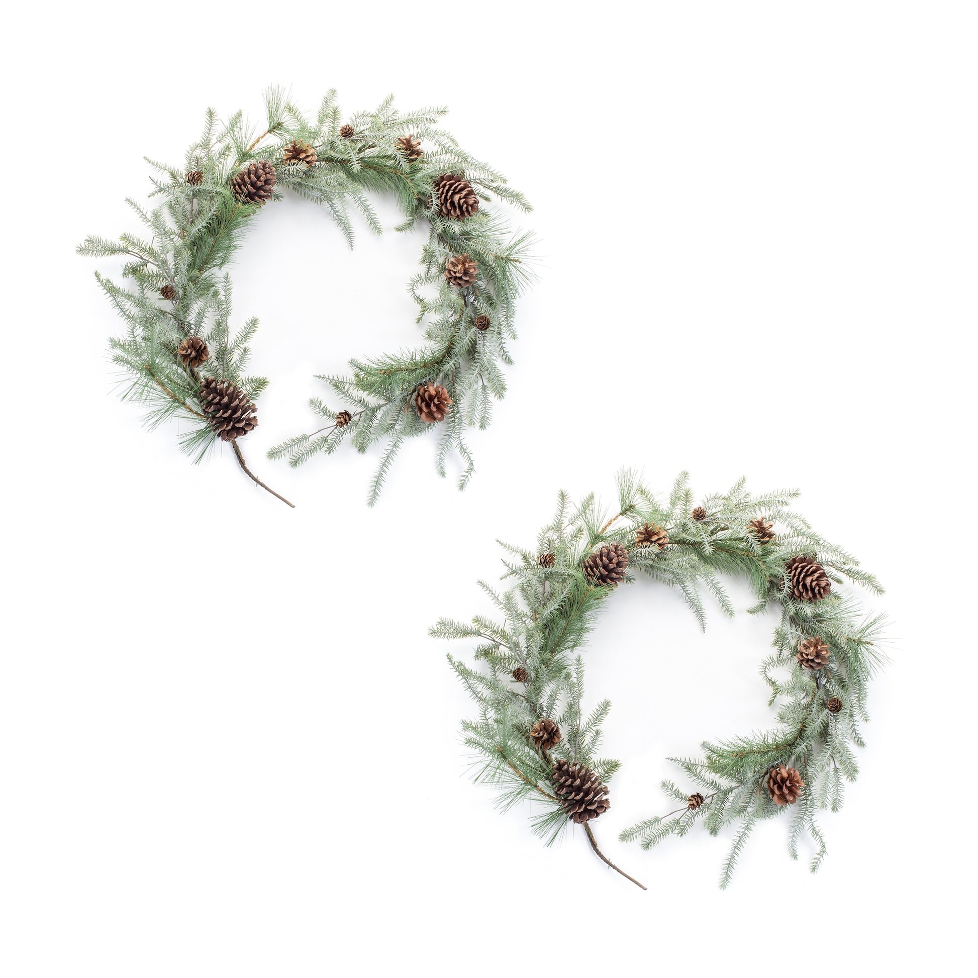 Add a pop of natural color to your holiday decor with this beautiful set of Mixed Pine Garlands. Featuring two pieces, this set would make a great addition to your Christmas centerpiece or mantle decor. The varigated pine foliage paired with the pine cone accents is the perfect combination to create a stunning Christmas display. Measuring 5ft in length each, thie set is sure to make a statement in your home.