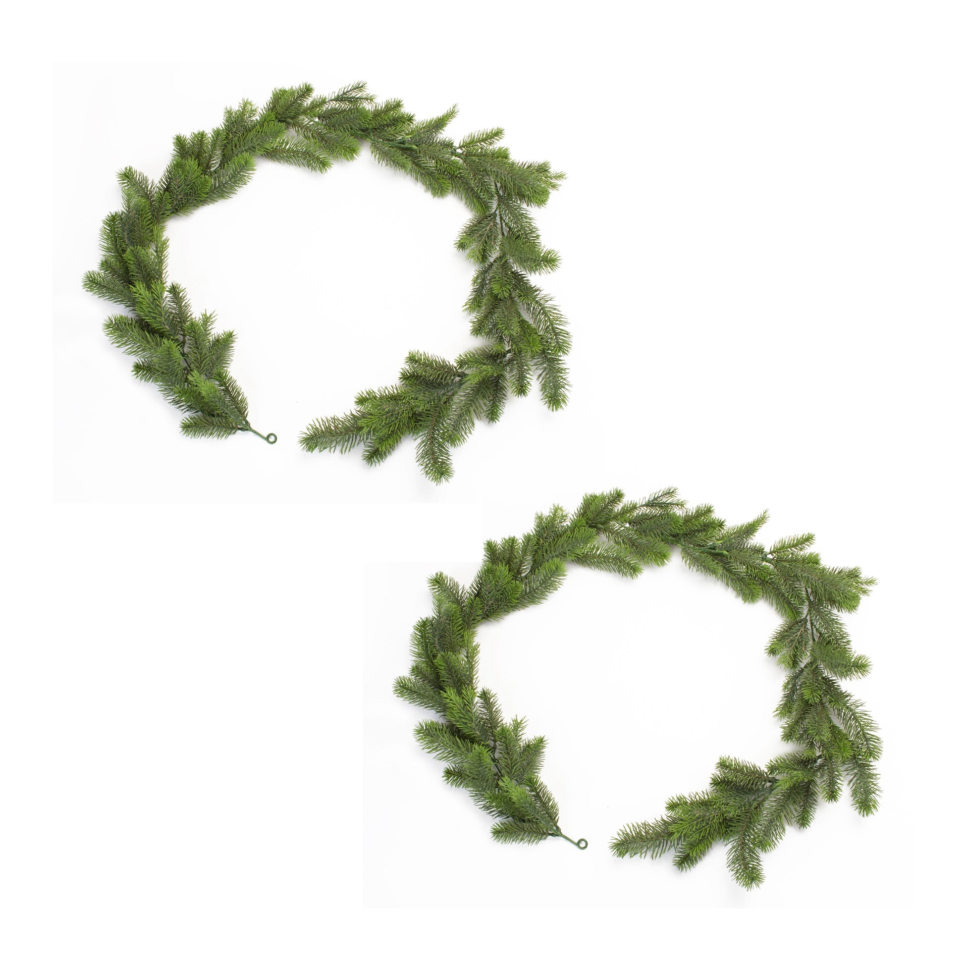 Add a pop of natural color to your holiday decor with this beautiful set of Mixed Pine Garlands. Featuring two pieces, this set would make a great addition to your Christmas centerpiece or mantle decor. The varigated pine foliage paired with the quality plastic composition is the perfect combination to create a stunning Christmas display. Measuring 6ft in length each, thie set is sure to make a statement in your home.