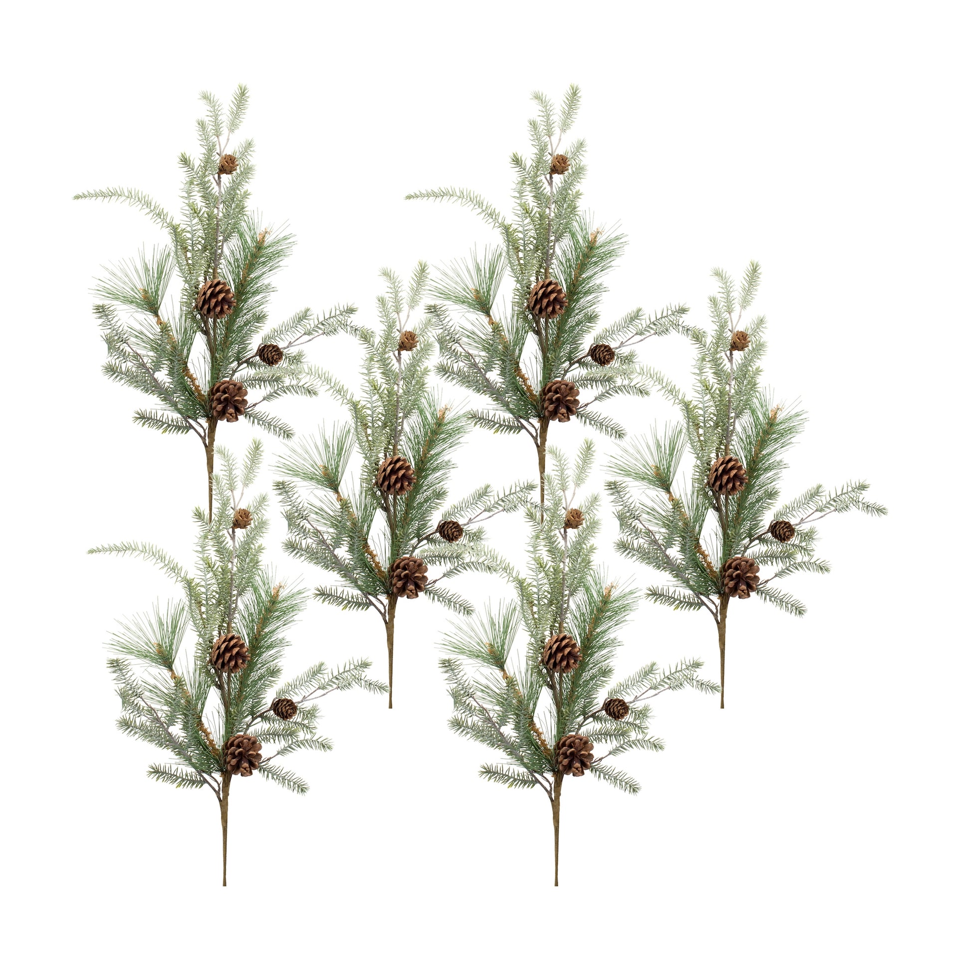 Ring in the holiday season with this beautiful set of Pine Sprays. Featuring six pieces, this set would be a great addition to your Christmas centerpiece or table arrangement. The varigated pine foliage paired with the pinecone accents is the perfect combination to create a stunning Christmas display. Add this set to a table vase to make a statement.