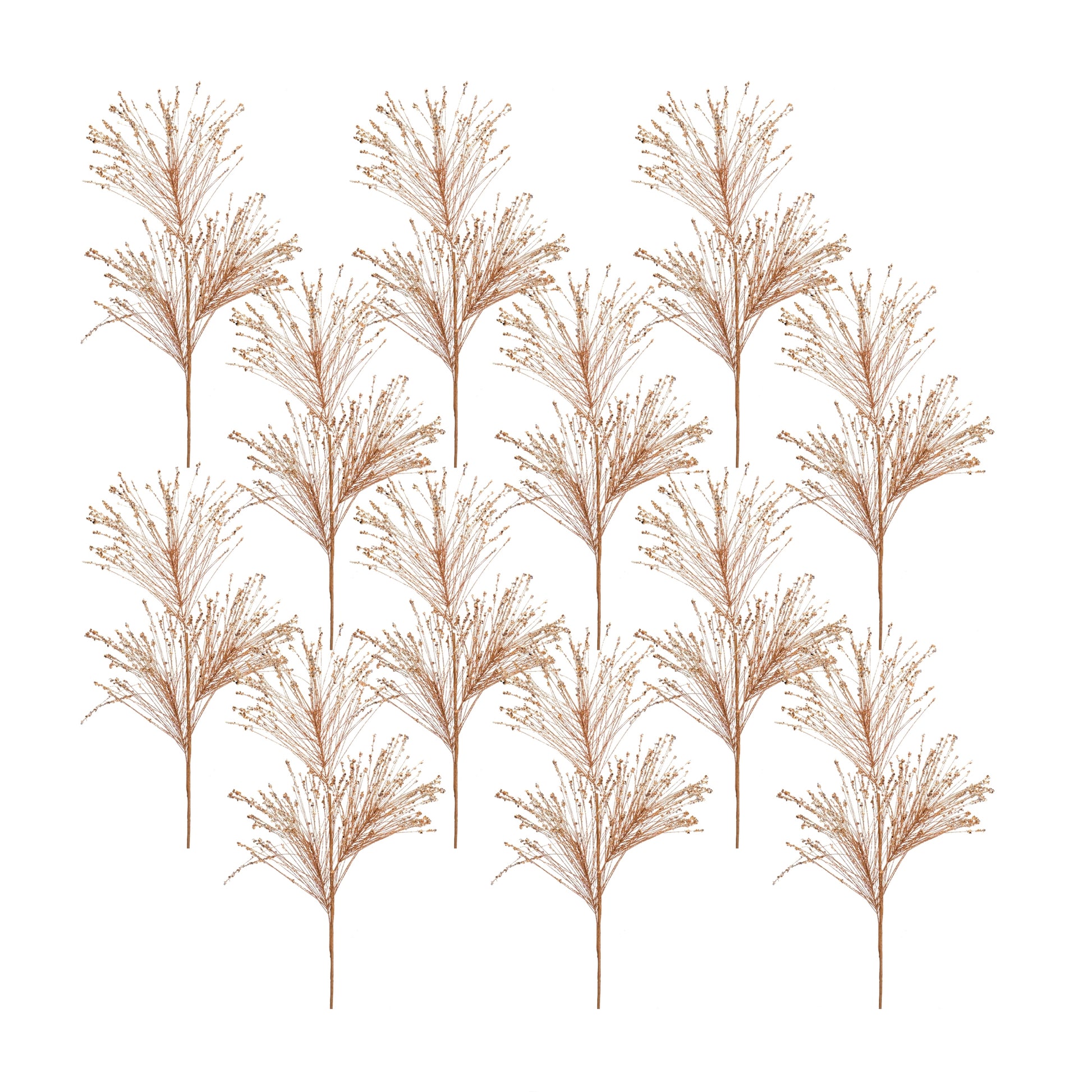 Add a pop of color to your holiday decor with this beautiful set of Pine Sprays with Sequins. Featuring twelve pieces, this set would make a great addition to your Christmas centerpiece or holiday floral vase. The metallic copper finish paired with the sparkley sequin accent is the perfect combination to create a stunning display. Add this set to a vase to add interest to the room, or use them to accent and draw attention to your other Christmas decor.