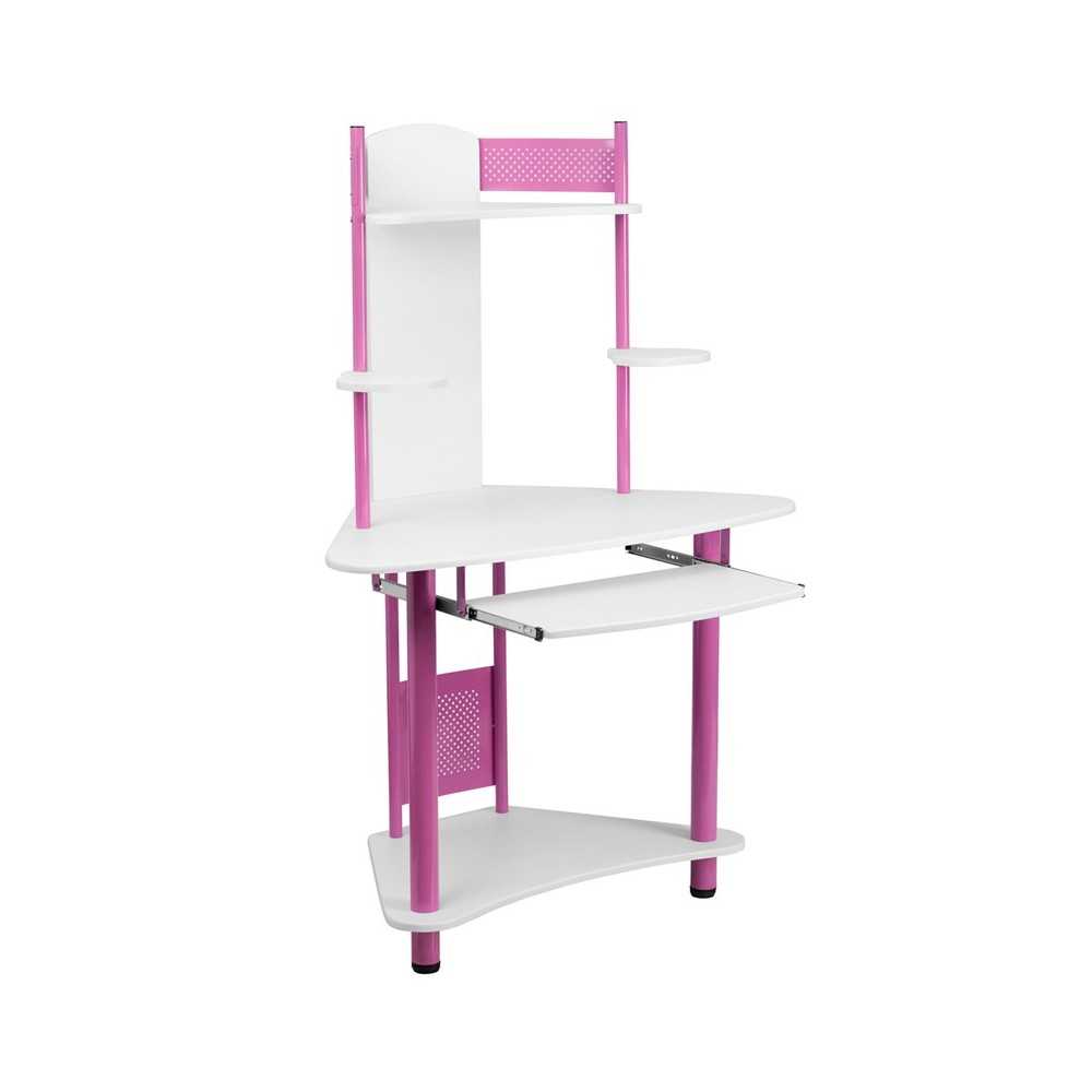 Add a cool, compact workstation to your kids bedroom and get organized with this tall computer desk with integrated hutch. This computer workstation provides a convenient workspace with a splash of color that will appeal to both kids and adults. Store all of your components within this computer desk, CPU, monitor and keyboard or laptop as well as a printer, and speakers. The pull-out keyboard platform can store your keyboard away when no longer needed. This desk provides a great option for studying or for casual computer usage. The white corner desk with blue accents provides a small footprint that will not interfere in your walk space. [NAN-JN-2705-PK-GG]