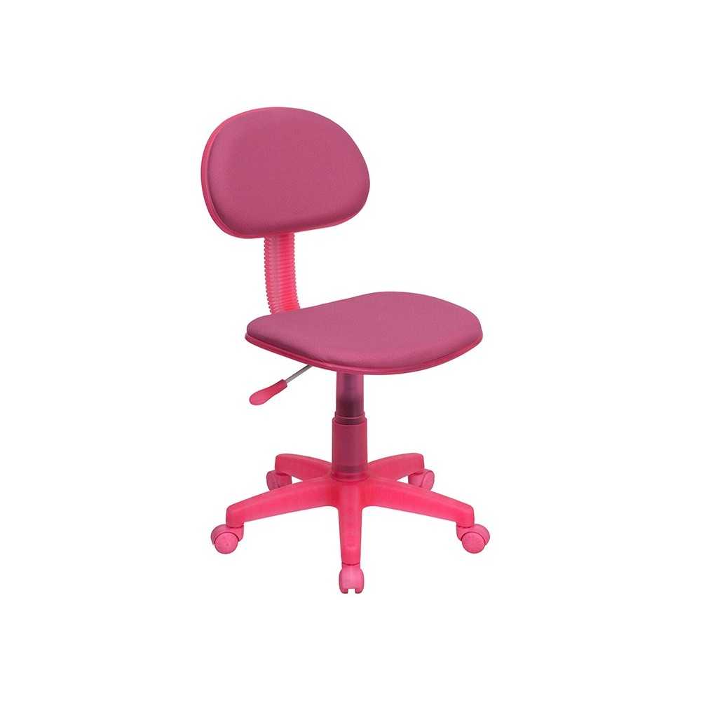Add an element of fun to the tasks that must be done with this upholstered task chair. This colorful office chair will add a whimsical touch to your child's bedroom, dorm room or your office. It features a low-back design to support your lower-to-mid back region. The swivel seat and back are foam padded and covered in durable pink fabric upholstery. Raise and lower the seat using the pneumatic seat height adjustment lever, conveniently located under the seat. A heavy-duty, nylon base with dual wheel casters makes it easy to roll across the floor when you need to and is color coordinated with the chair. This delightful little chair will brighten your day. [BT-698-PINK-GG]