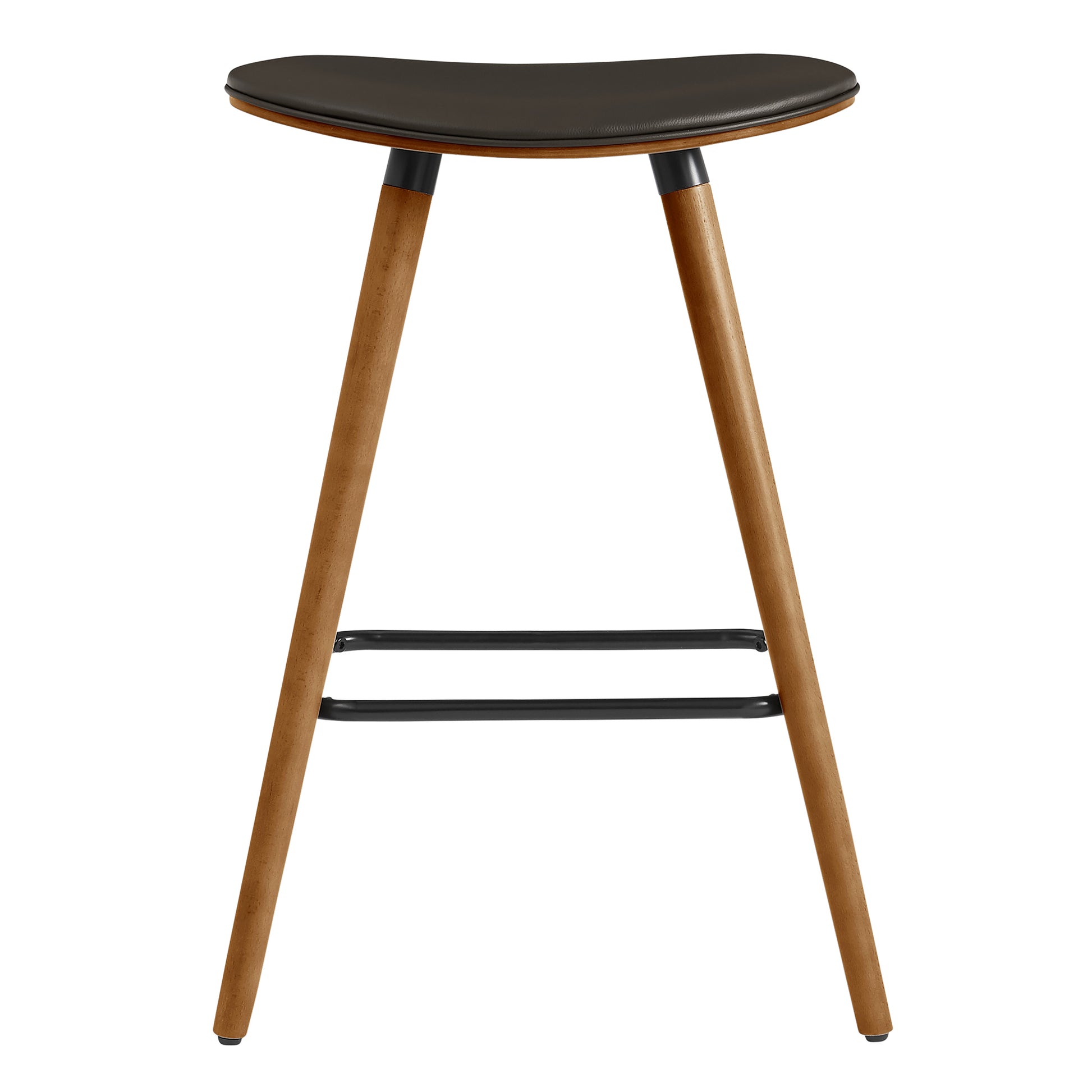The Piper 26" Counter Height Backless Bar Stool in Brown Faux Leather and Walnut Wood from Armen Living is an ideal stool for any modern or contemporary household. This beautiful backless stool sports a sturdy wood frame beautifully accented by a black metal rectangular footrest - offering a stylish aesthetic without comprising the practicality or functionality of this item. The plush seat cushion is padded with high-density foam that will provide you with immense comfort. Though an excellent fit for the kitchen or bar, the Piper's novel yet practical look makes it great for enhancing the aesthetic of just about any room in your house.