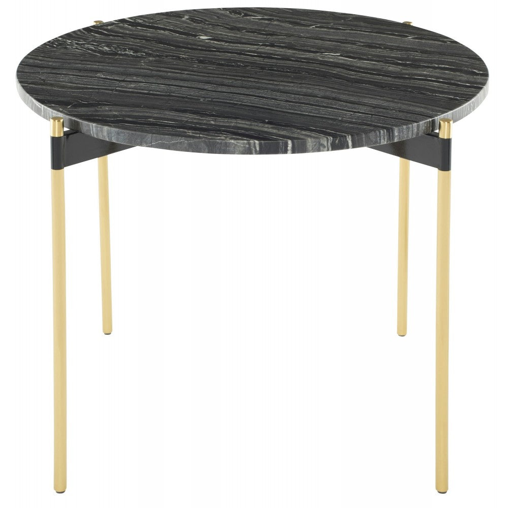 The Pixie side table embodies refined simplicity. A smooth surface with richly textured marble grain rests weightlessly on slim brushed gold stainless-steel rods. The formal elegance of stone and steel is lightened and softened by the subtlety of the design. Each piece of marble is expertly crafted out of a unique piece of natural stone, creating beautiful variations and one-of-a-kind details.