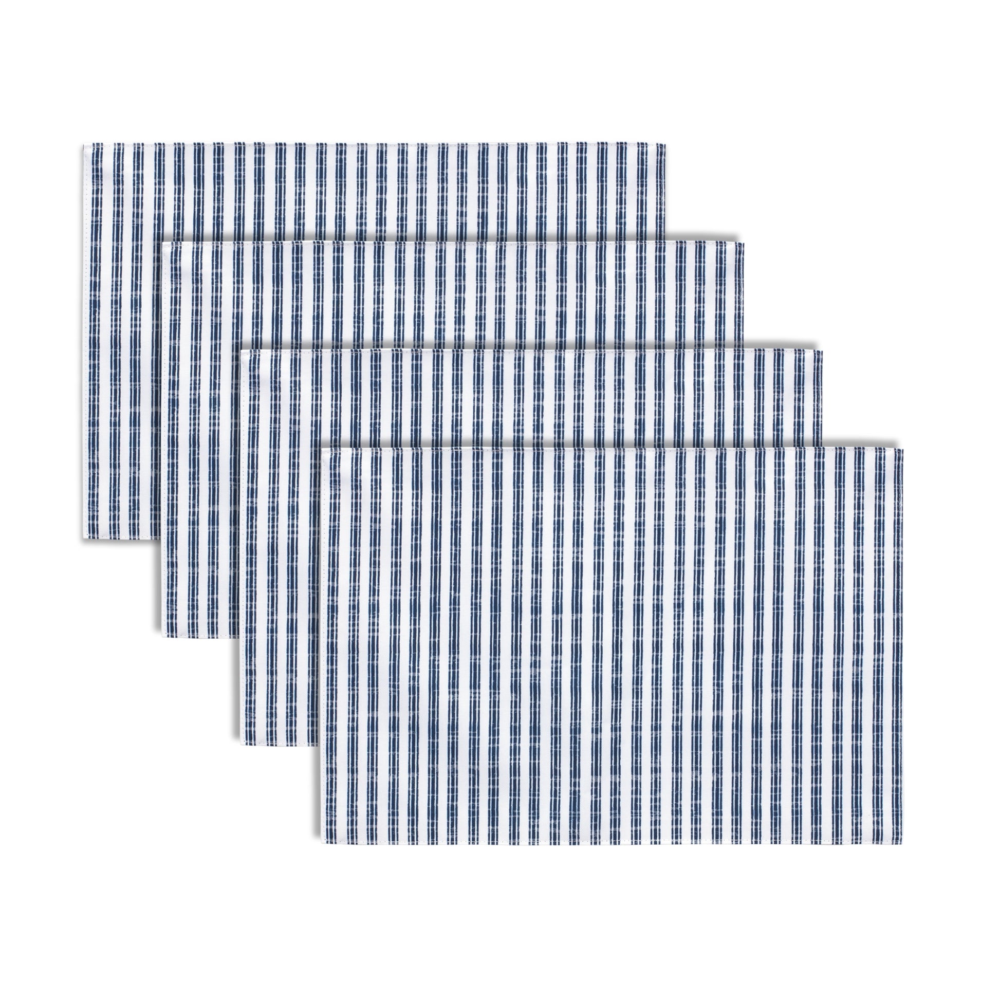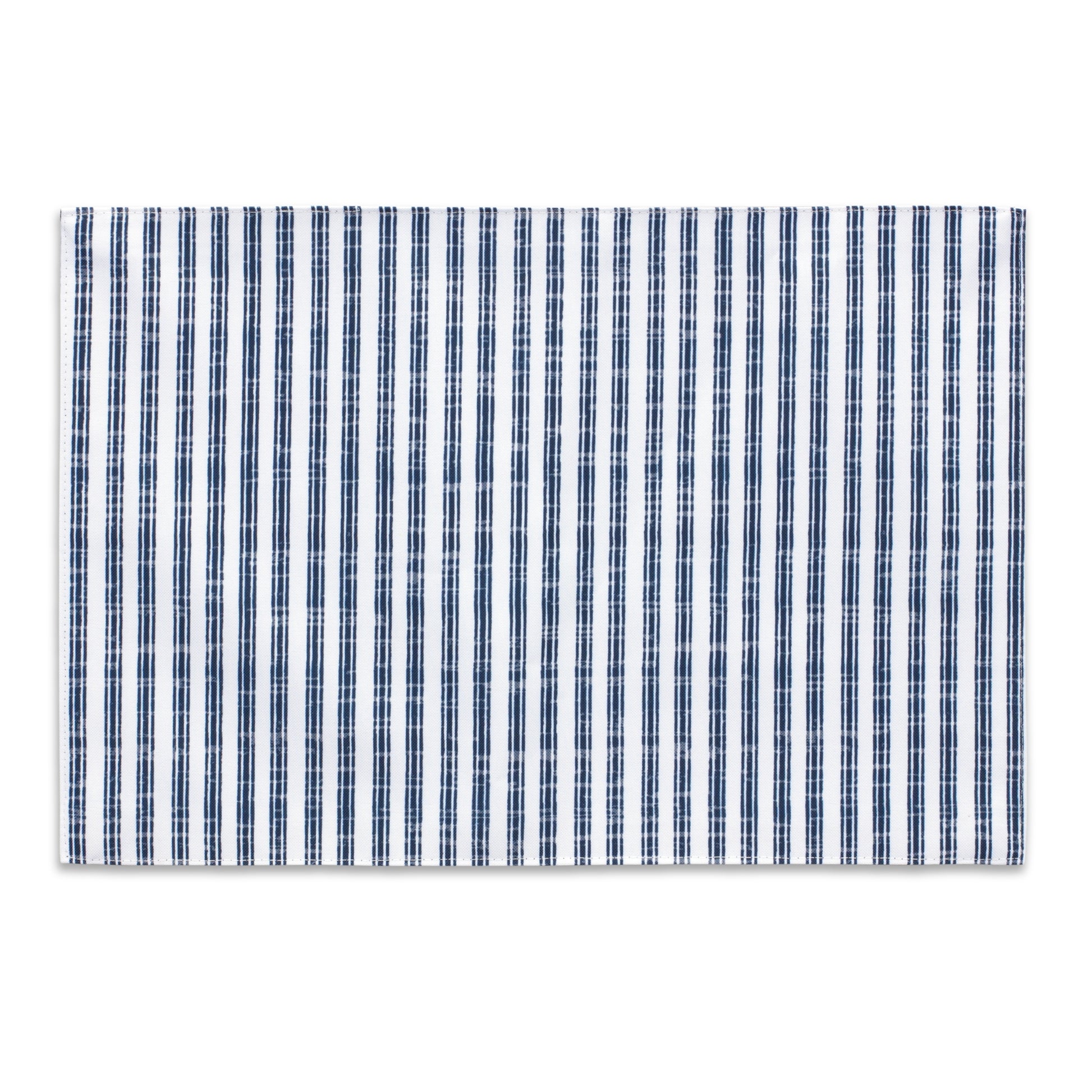 Enhance your dining table display with this beautiful set of Striped Placemats. Featuring four pieces, this set is a great additon to any style of home decor. The classic navy blue and white color scheme paired with the striped pattern design is the perfect combinaiton to create a stunning display. The quality polyester composition is sure to last for seasons to come. Reccommended for both functional and decorative use.