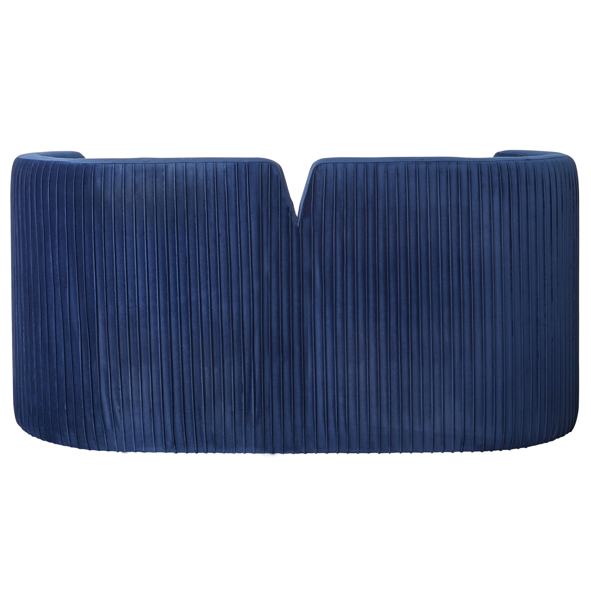 Beautiful love seat that has a wood frame and it is covered with a beautiful velveteen fabric. The sofa has a pleated design on the seat back.Sagebrook Home has been formed from a love of design, a commitment to service and a dedication to quality. They create and import fashion forward items in the most popular design styles. Backed with years of experience in the textile field, They are now providing a complete Home decor story. the combination of wall decor, furniture, lighting and Home accessories are all coordinated with textiles to provide a complete Home look. Sagebrook Home is committed to providing the best Home decor and accent pieces at value prices.